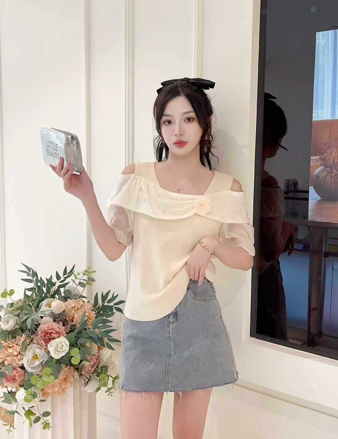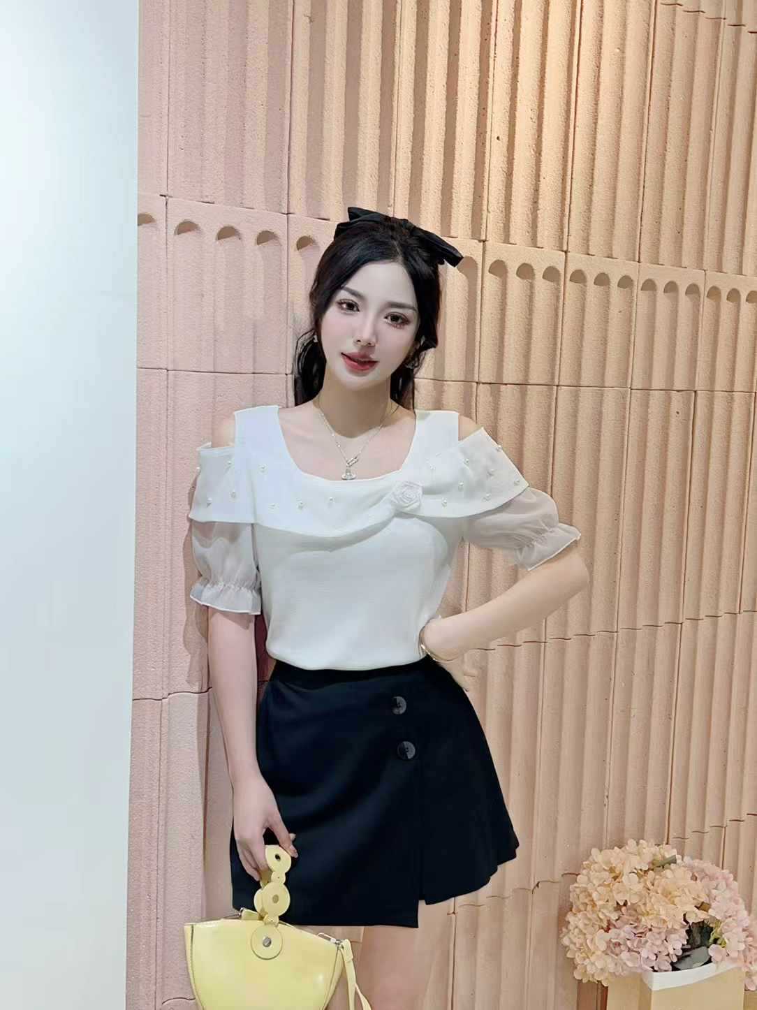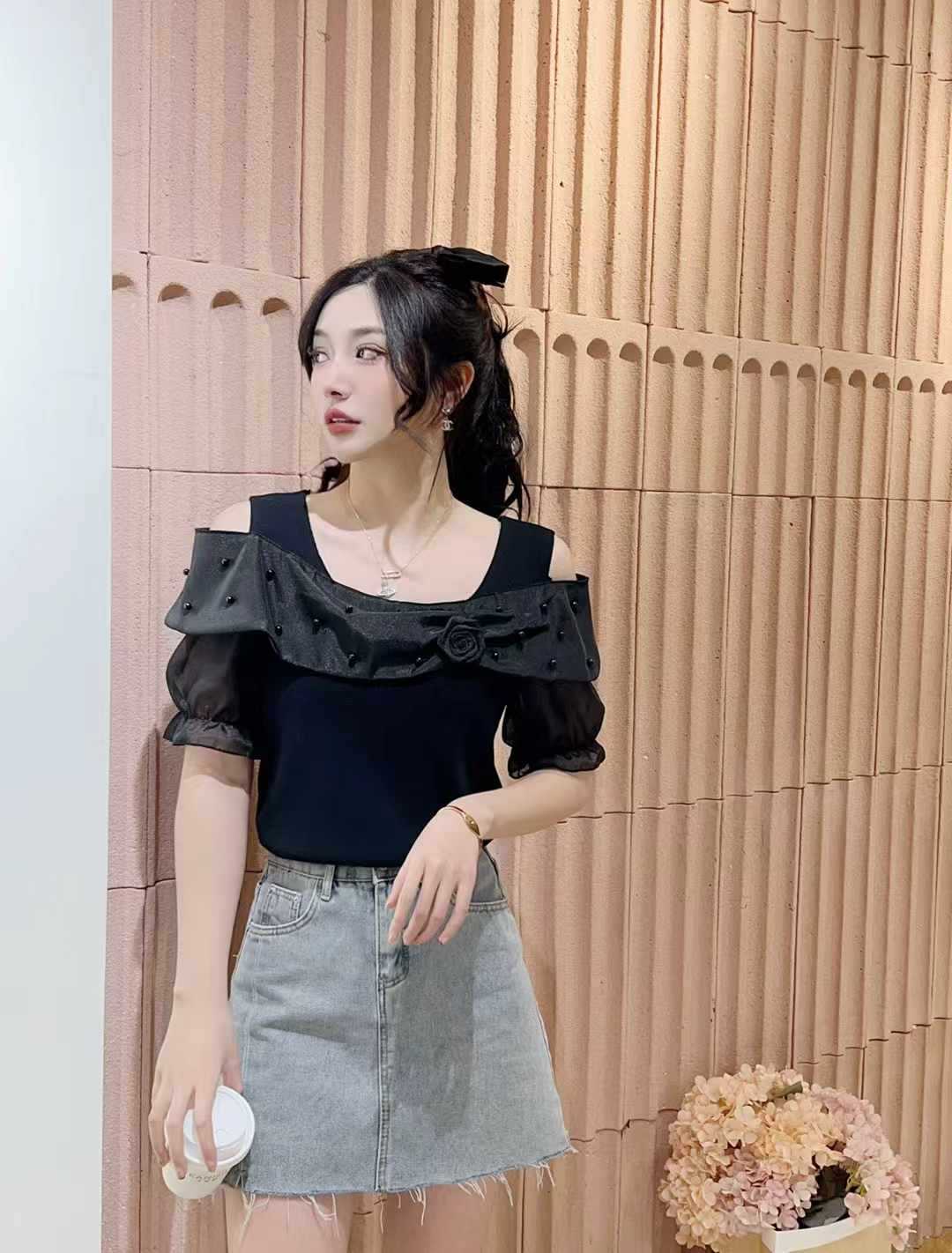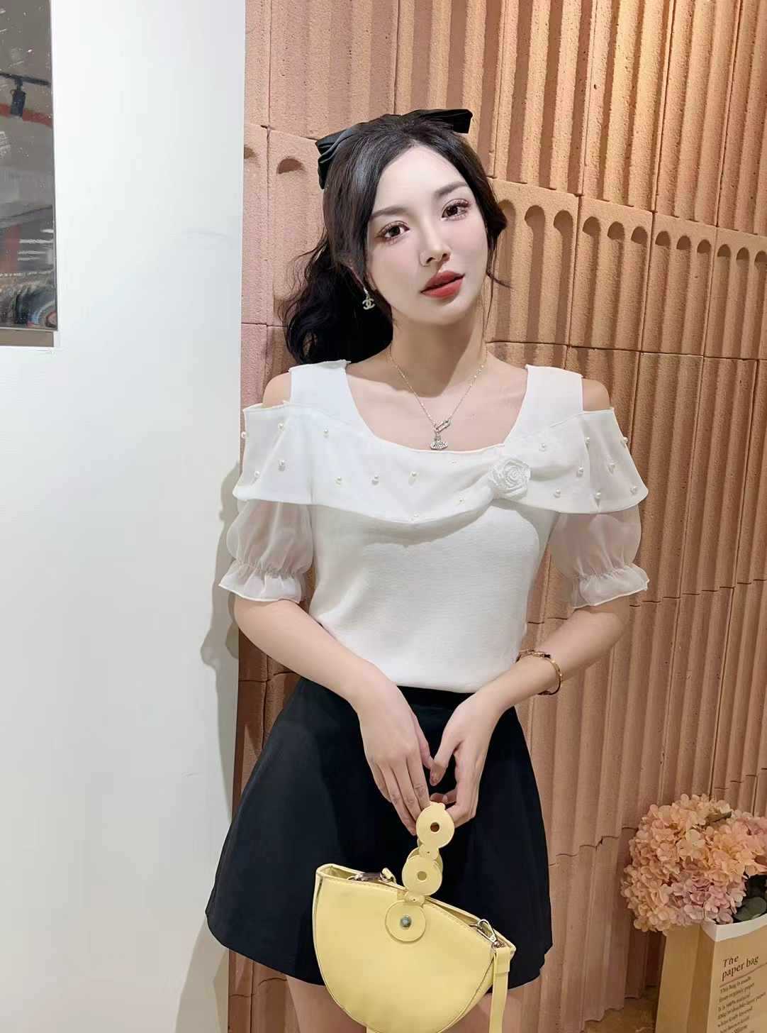 Главная страница > Женская футболка с открытыми плечами и короткими рукавами, летняя мода, модный дизайн, топ на одно плечо с рюшами, рубашка для похудения