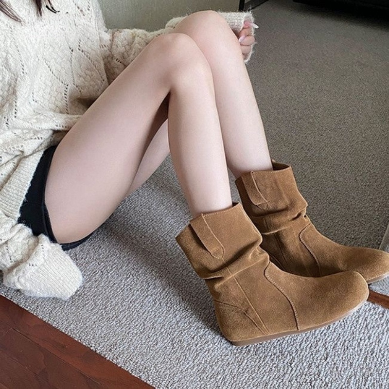Главная страница > Коровья кожа версия ~ Высота винтажные короткие сапоги женский 2024 Осень Зима Западный Мартин сапоги с круглой головкой и коротким трубкой