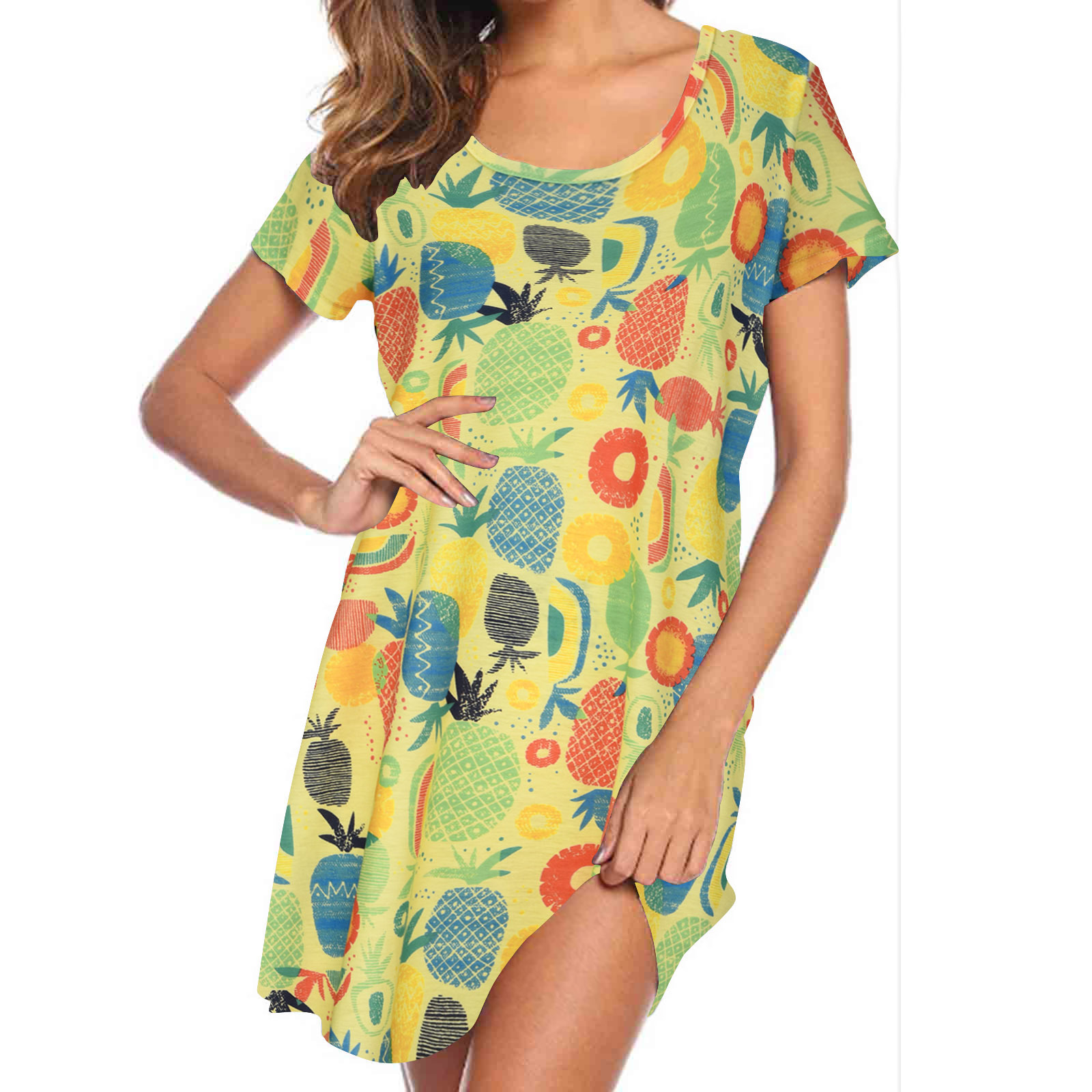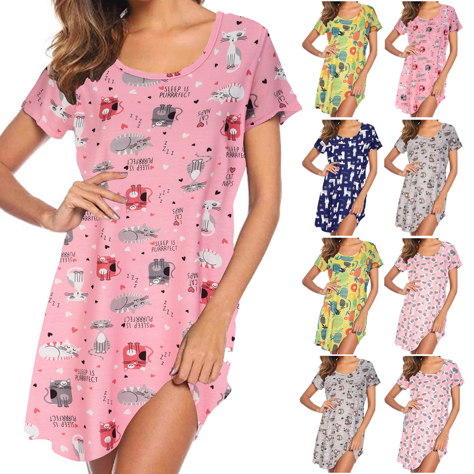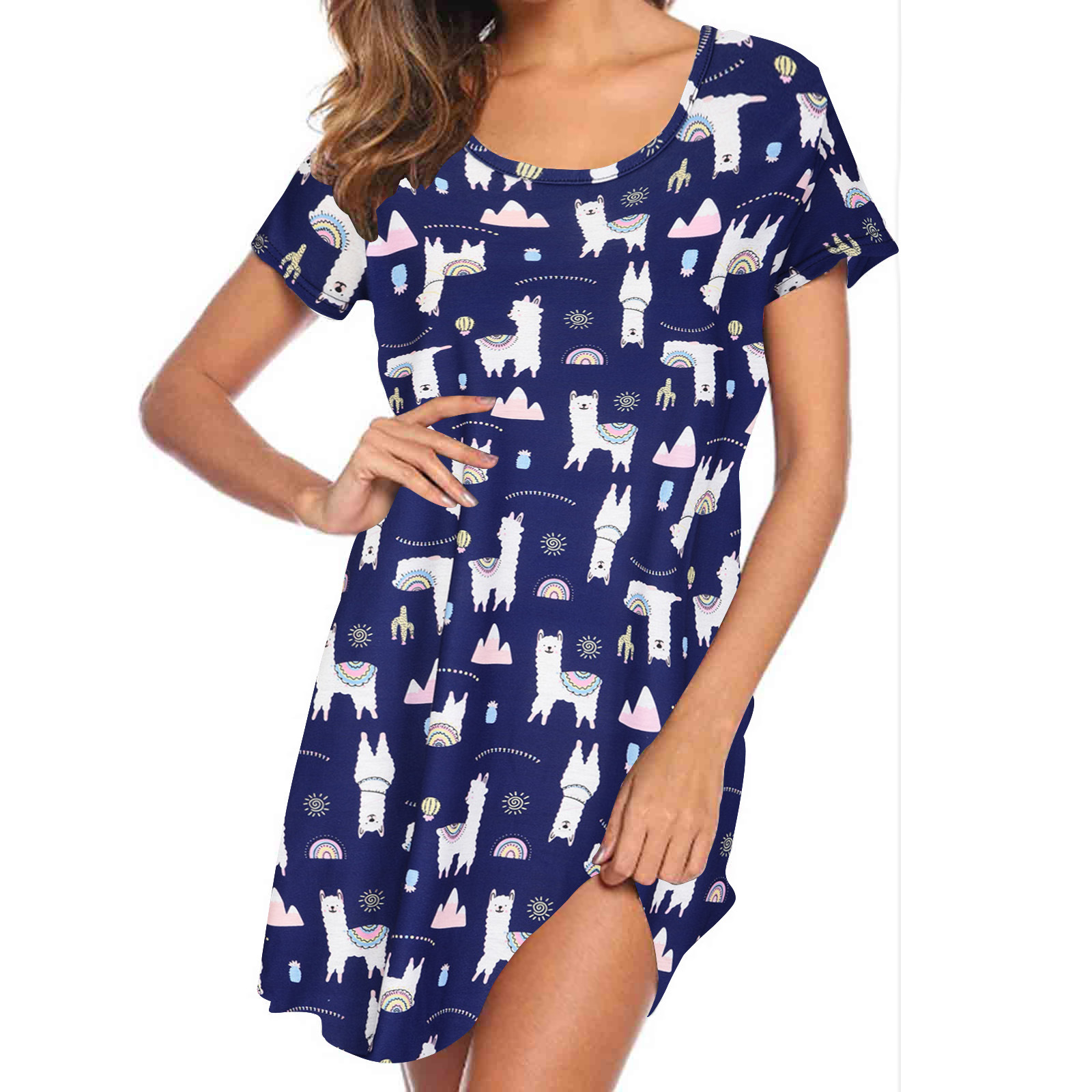 Главная страница > 2024 Трансграничная Европа и США Amazon весна и лето Новый стиль с короткими рукавами в ночной рубашке с принтом домашней одежды Женское повседневное платье