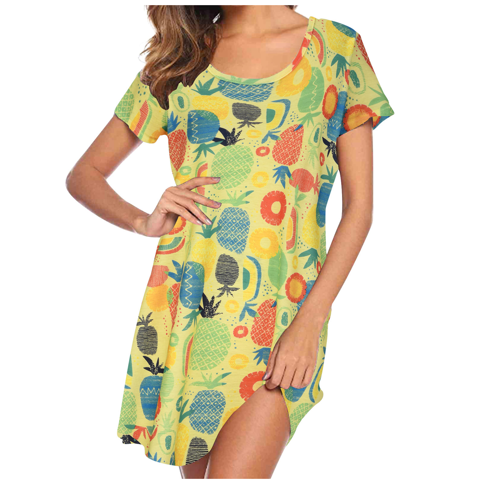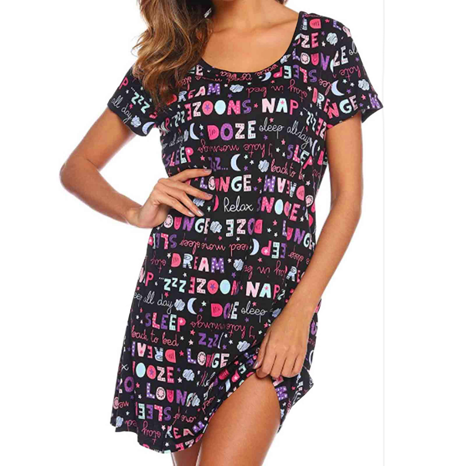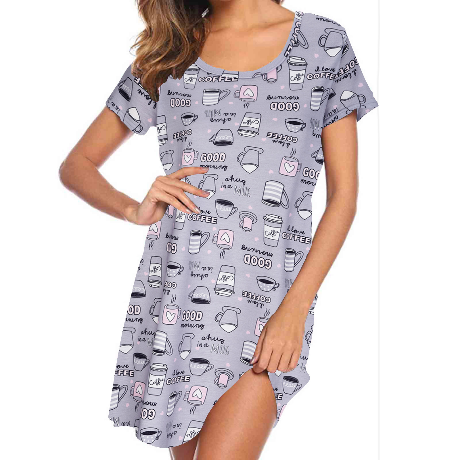 Главная страница > 2024 Трансграничная Европа и США Amazon весна и лето Новый стиль с короткими рукавами в ночной рубашке с принтом домашней одежды Женское повседневное платье