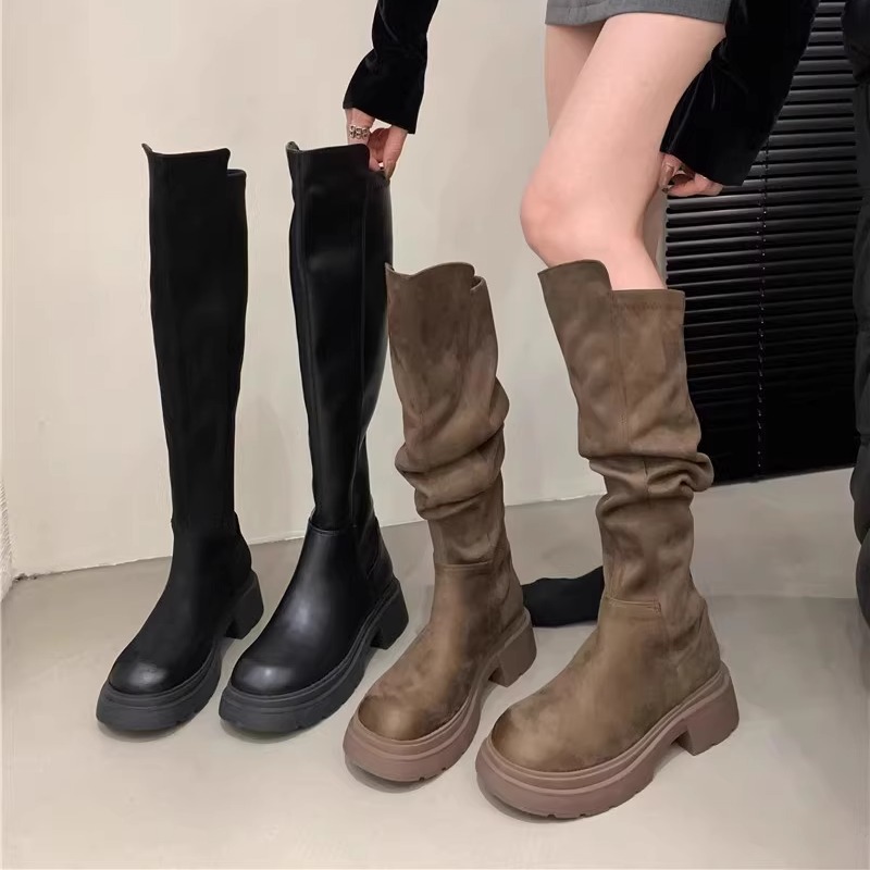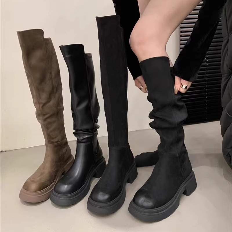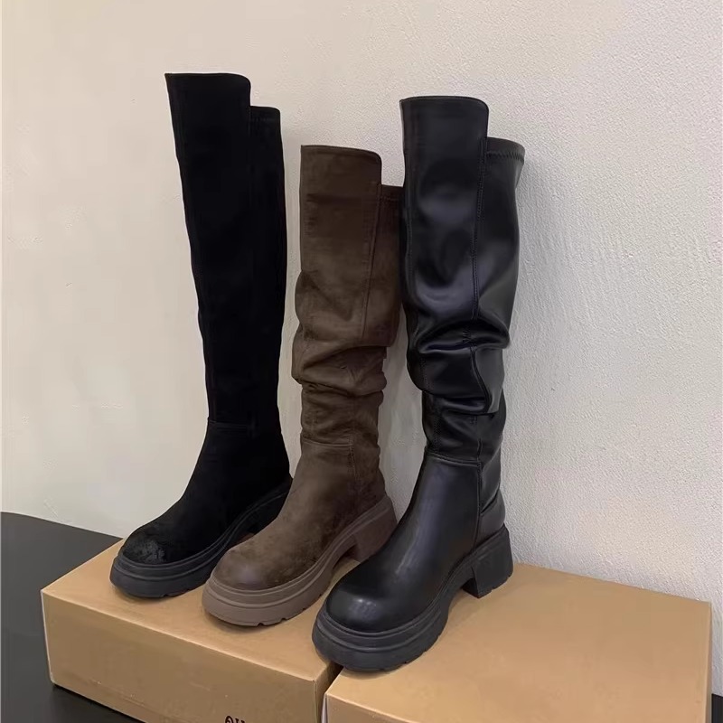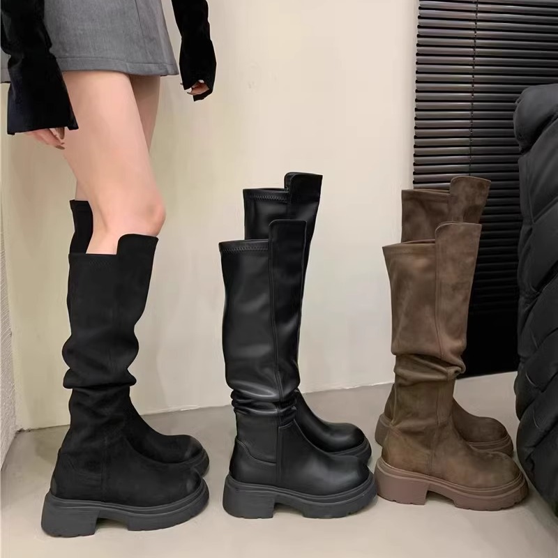 Главная страница > Ретро высокие сапоги до колена для маленьких людей, осень-зима 2025, новые утепленные сапоги на толстой подошве, эластичные сапоги, замшевые высокие сапоги для женщин
