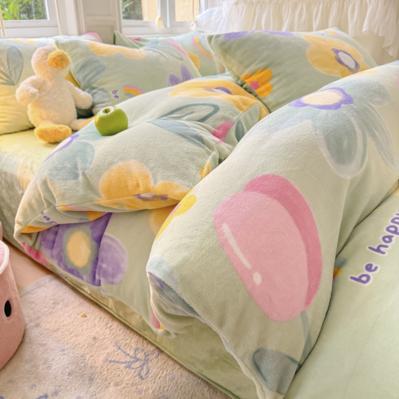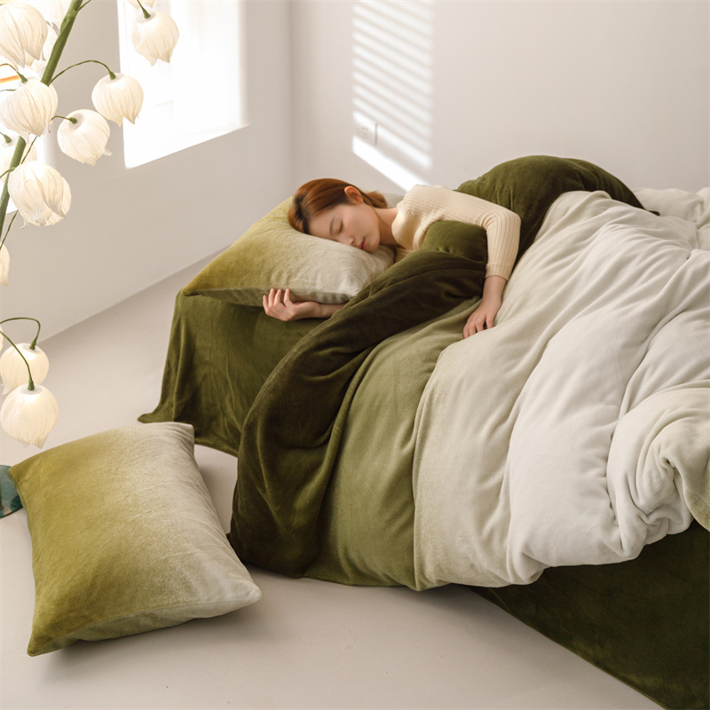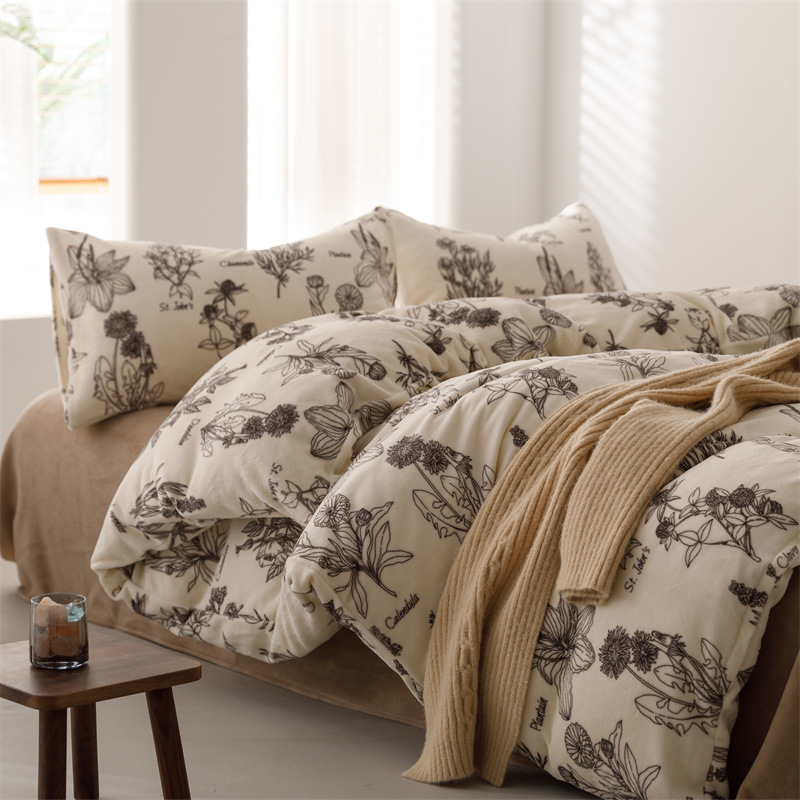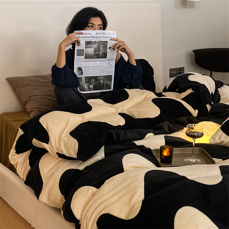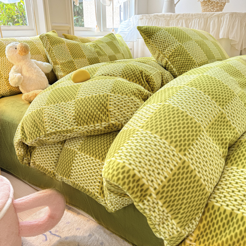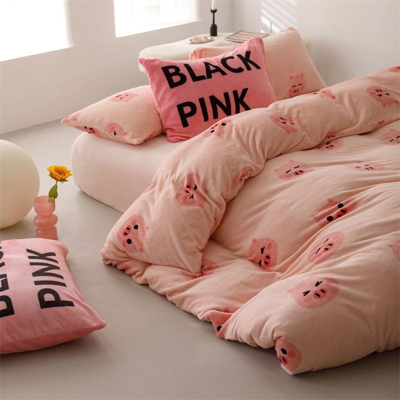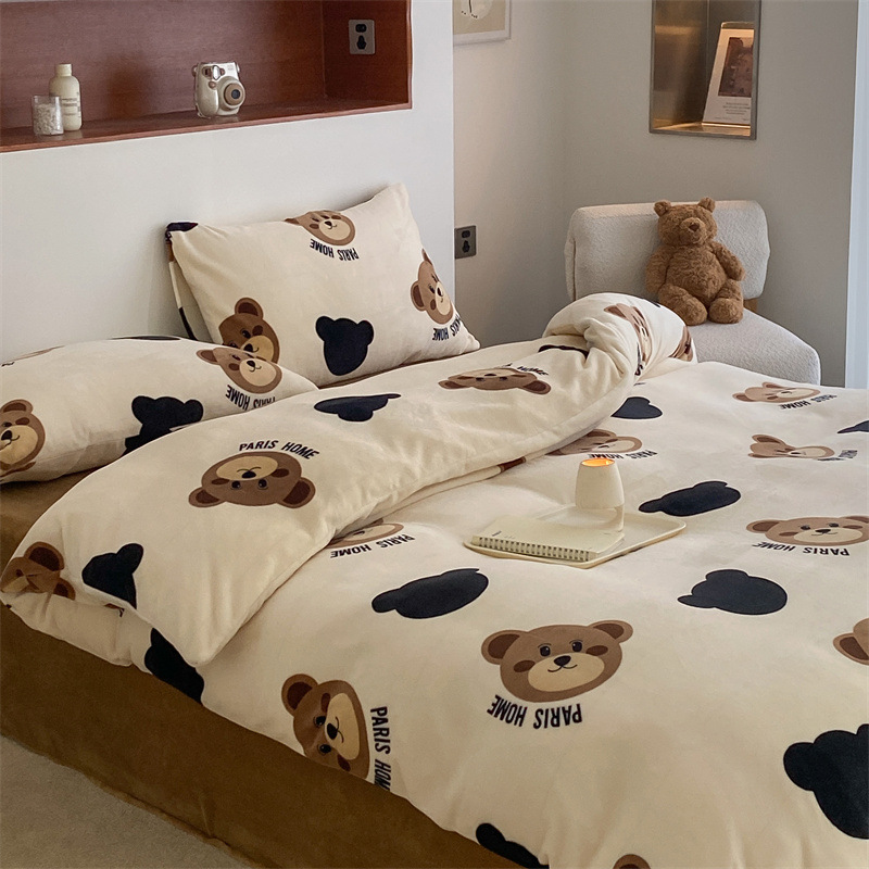Зимний молочный бархат набор из четырех частей утолщен, теплая студенческое общежитие свежий набор из трех частей
