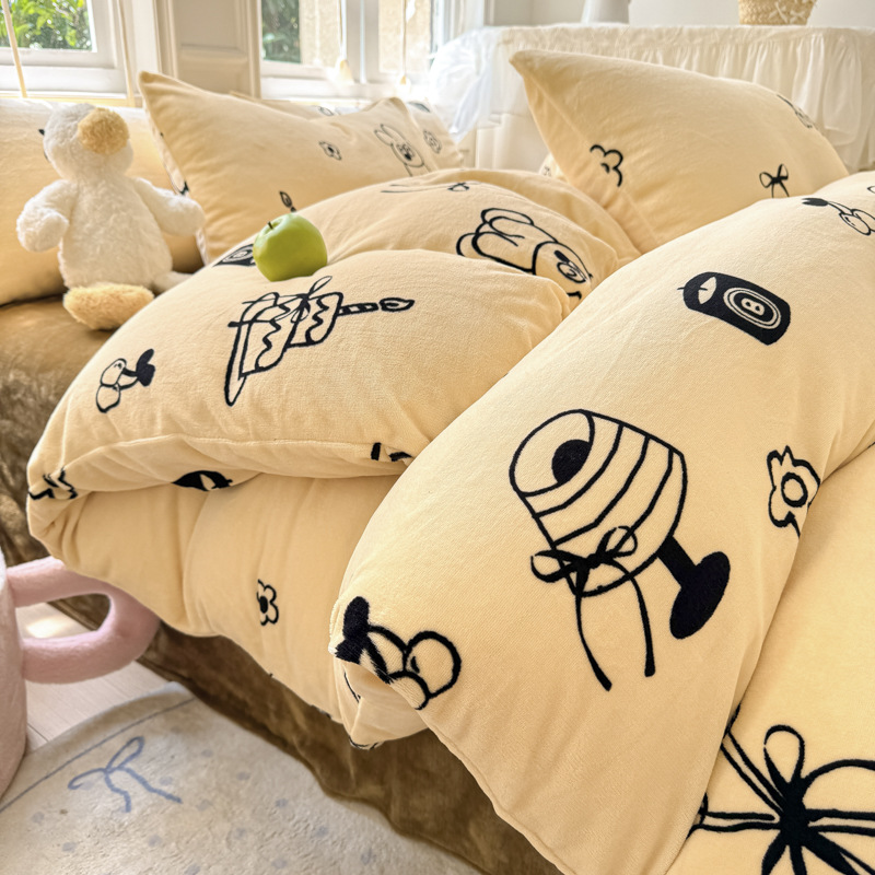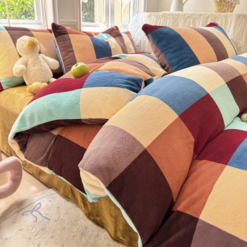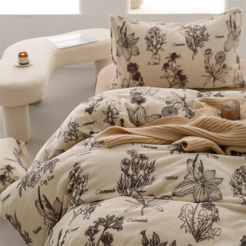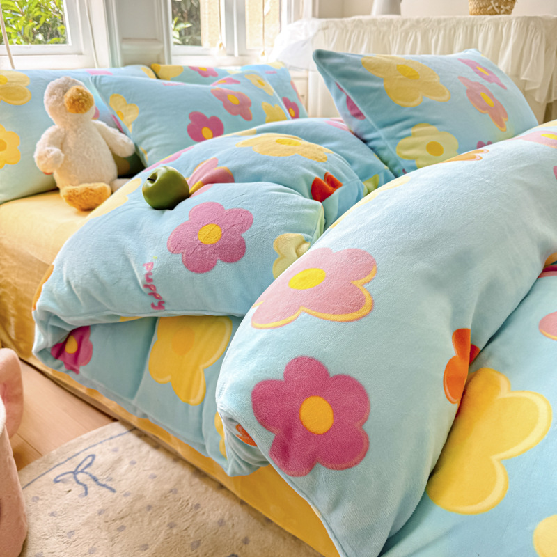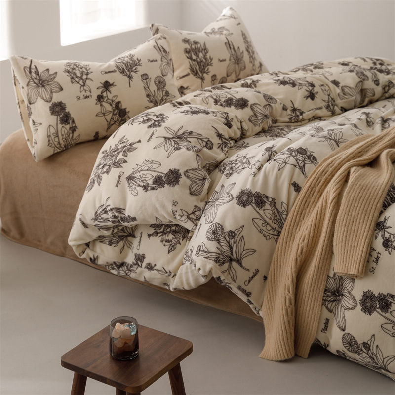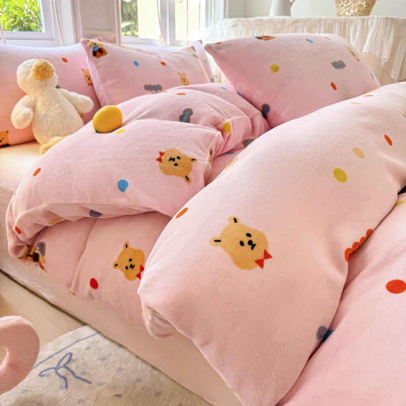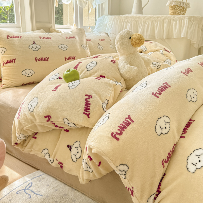 Зимний молочный бархат набор из четырех частей утолщен, теплая студенческое общежитие свежий набор из трех частей