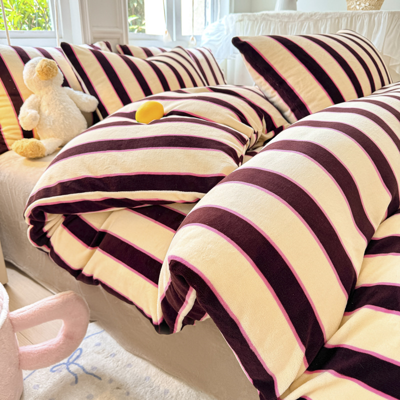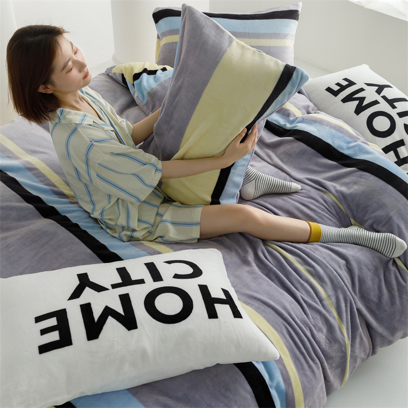 Главная страница > Зимний молочный бархат набор из четырех частей утолщен, теплая студенческое общежитие свежий набор из трех частей
