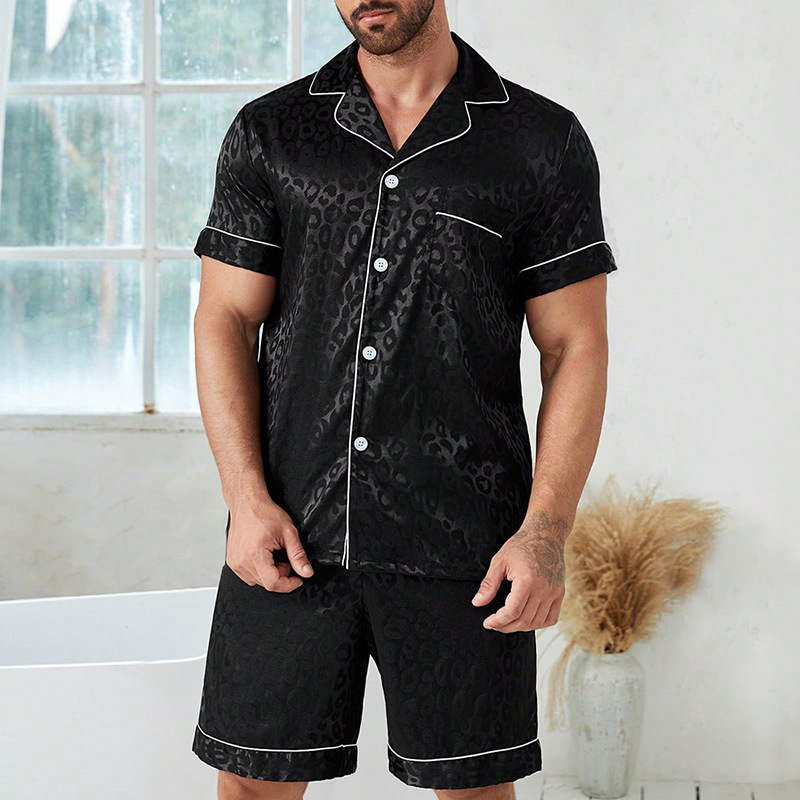 Главная страница > Летняя новая Пижама с леопардовым принтом, имитация шелка, для внешней торговли, мужские тонкие шорты с коротким рукавом, комплект домашней одежды