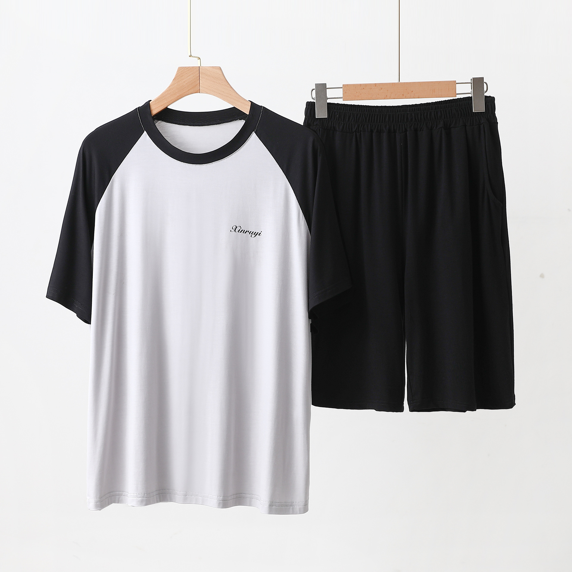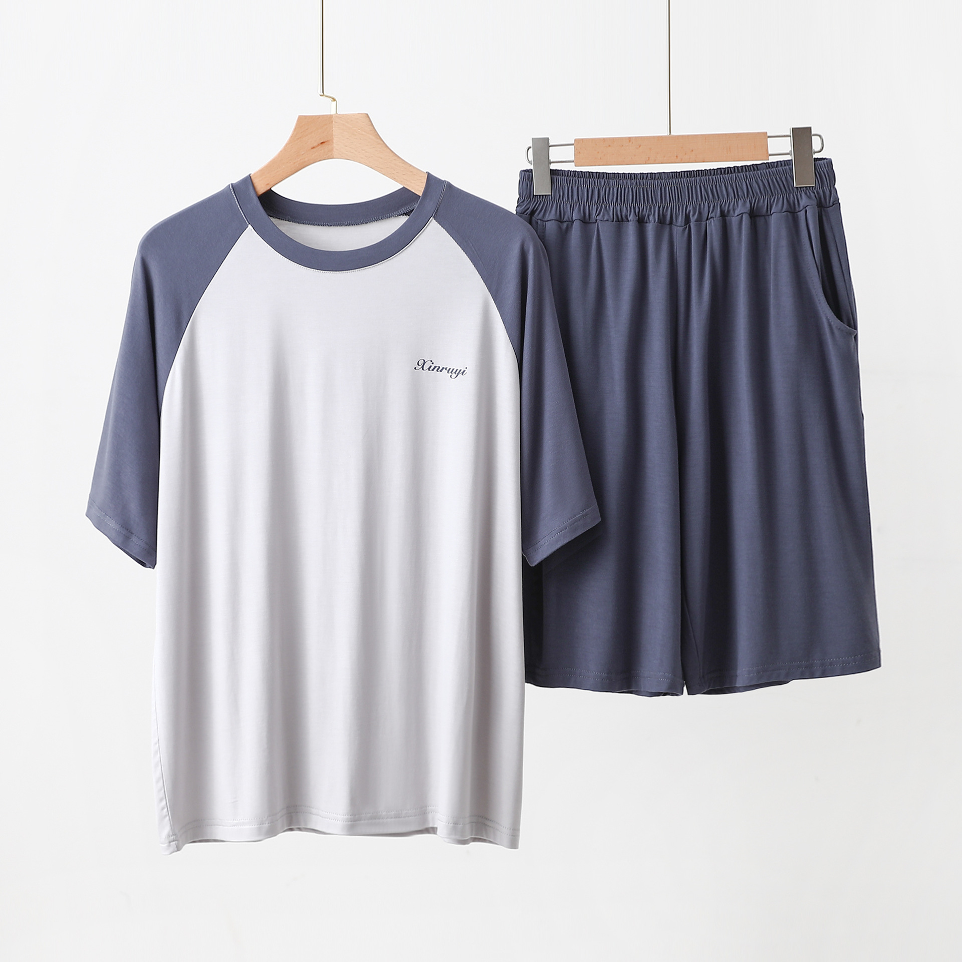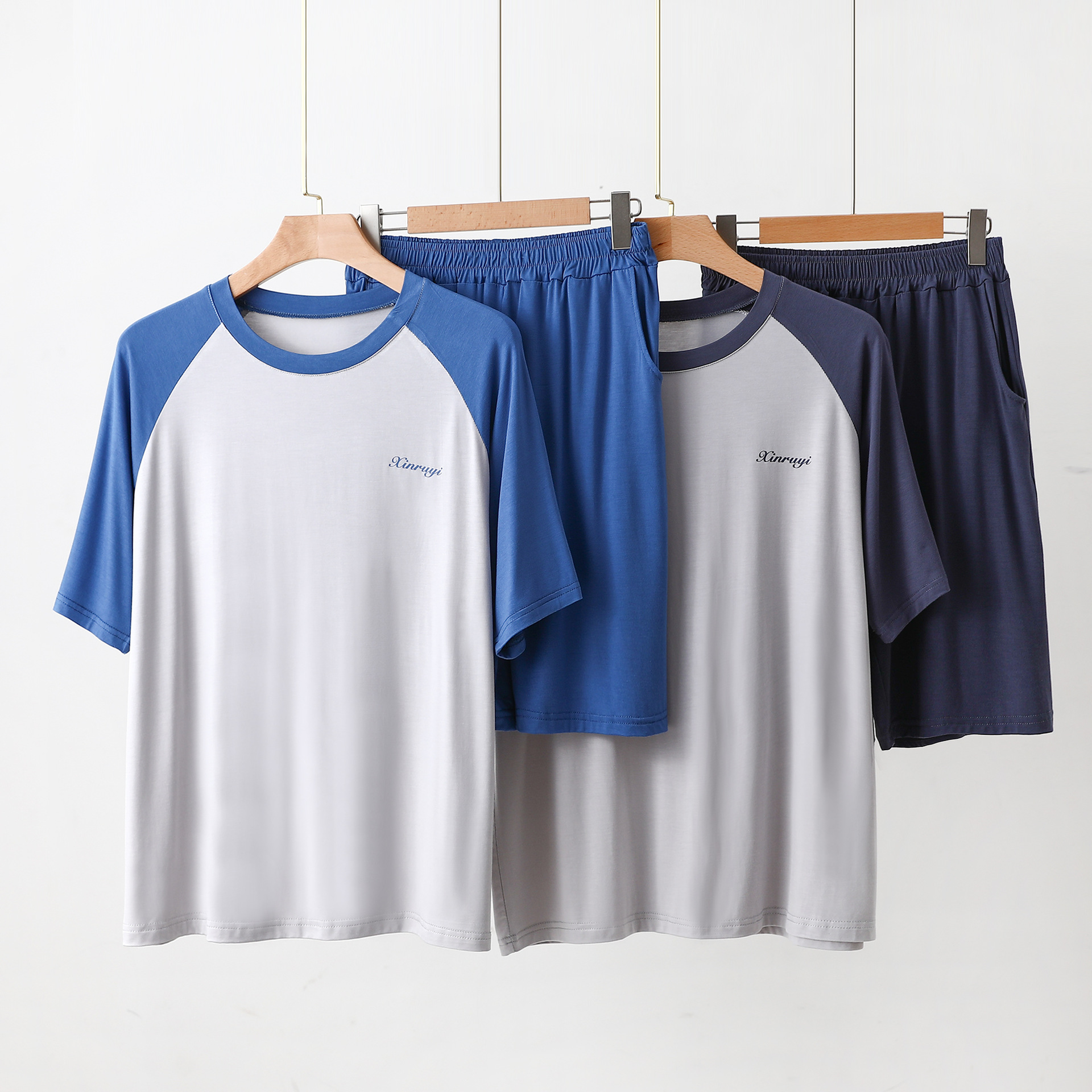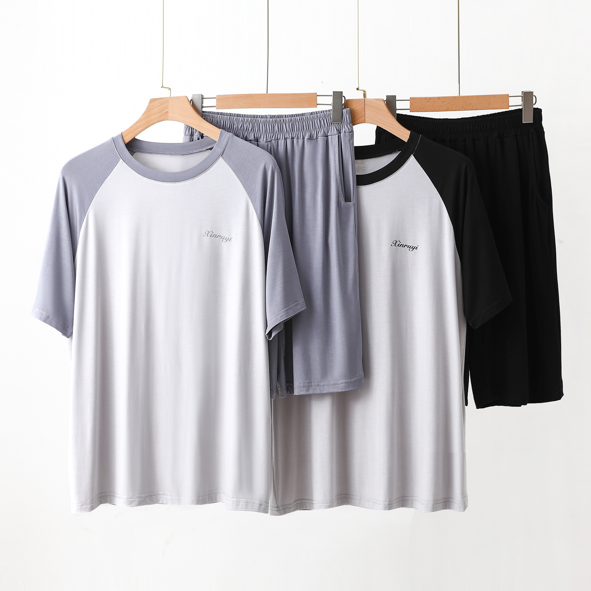 Главная страница > Летние тонкие шорты с коротким рукавом и принтом, мужские Модальные шорты с рукавом реглан, цветными блоками, домашняя одежда, Пижамный костюм больших размеров