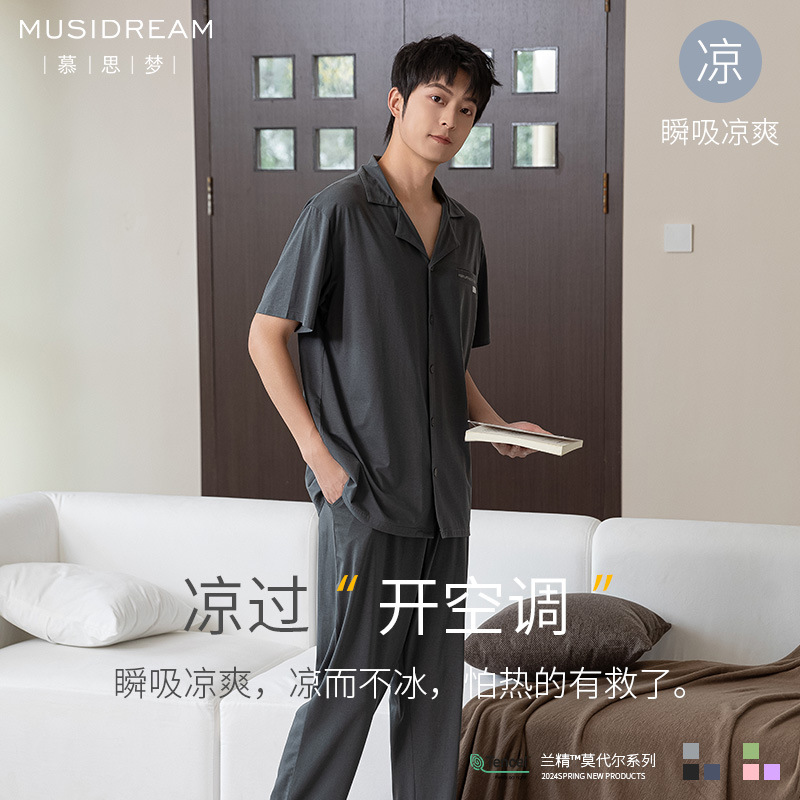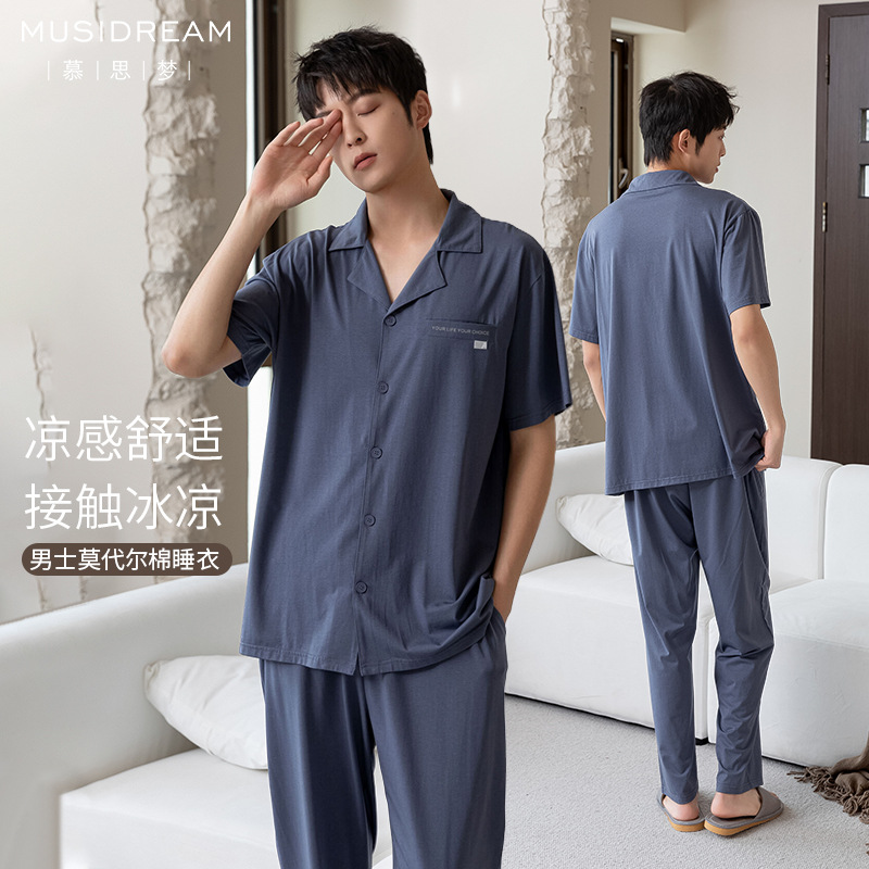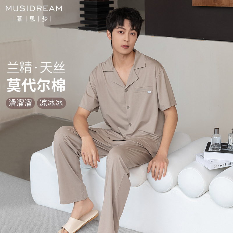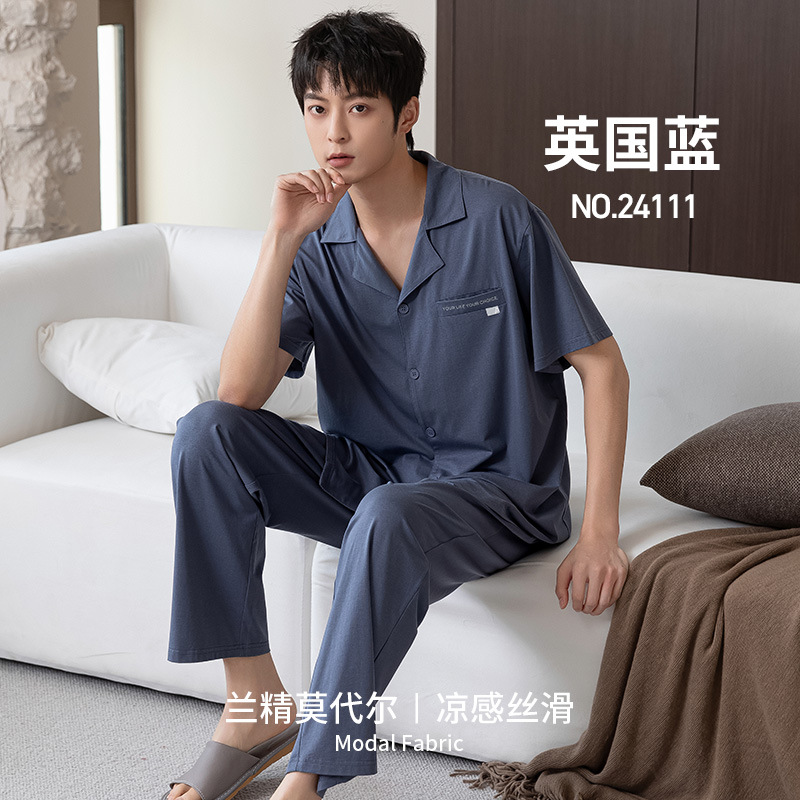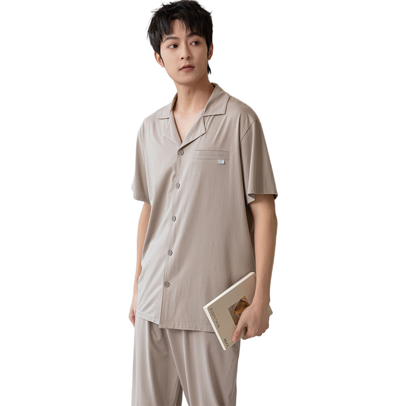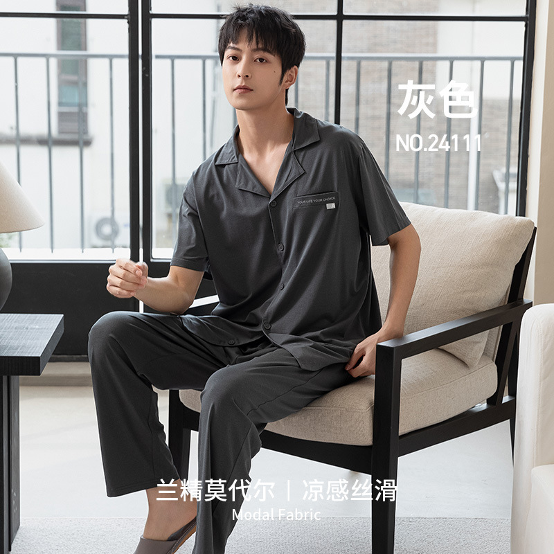 Главная страница > Летний тонкий мужской пижамный комплект, высококачественные шорты с длинными рукавами, домашняя одежда из хлопка Lenzing Modal, простой и повседневный.