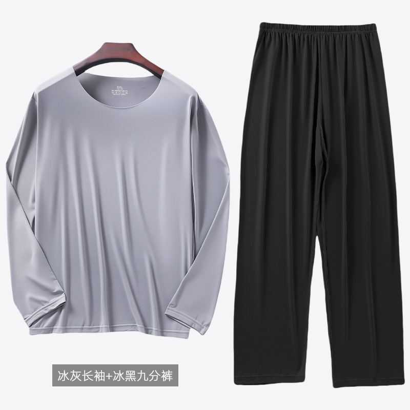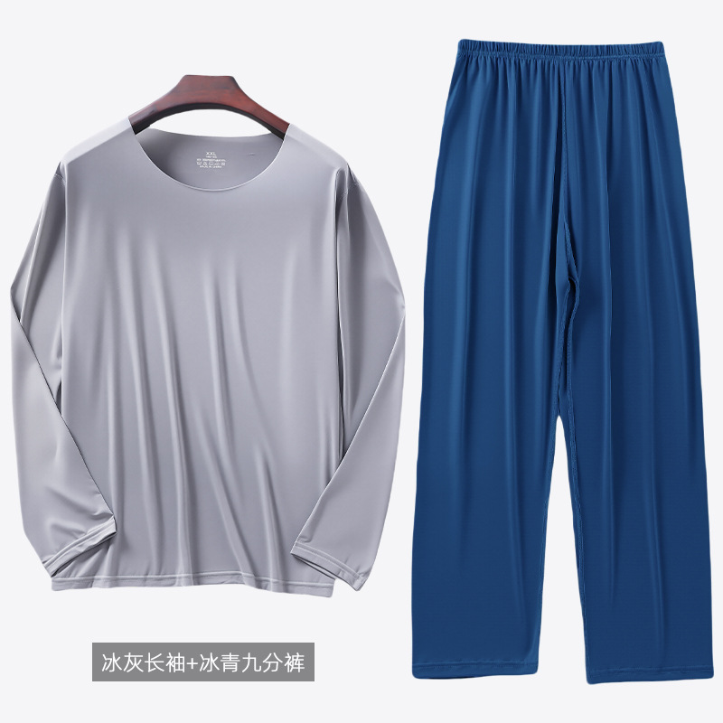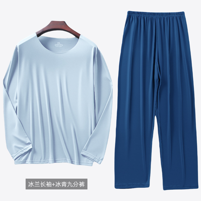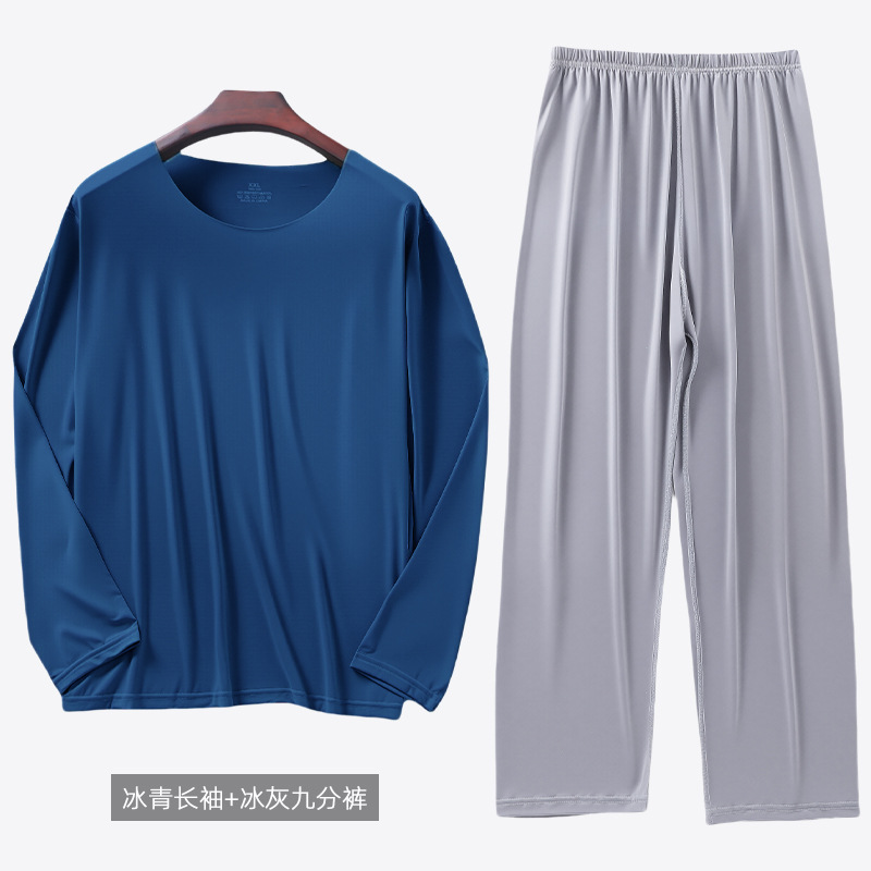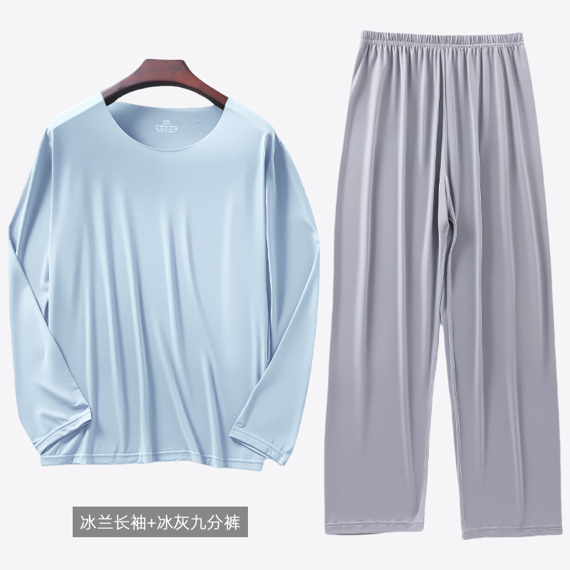 Главная страница > Неченый ледяной шелк пижамы летом мужчины с длинными рукавами брюки наизранный спортивный повседневный набор домашней одежды тонкий плюс большой размер