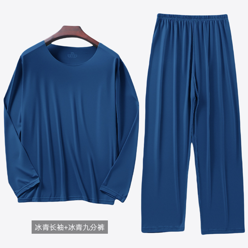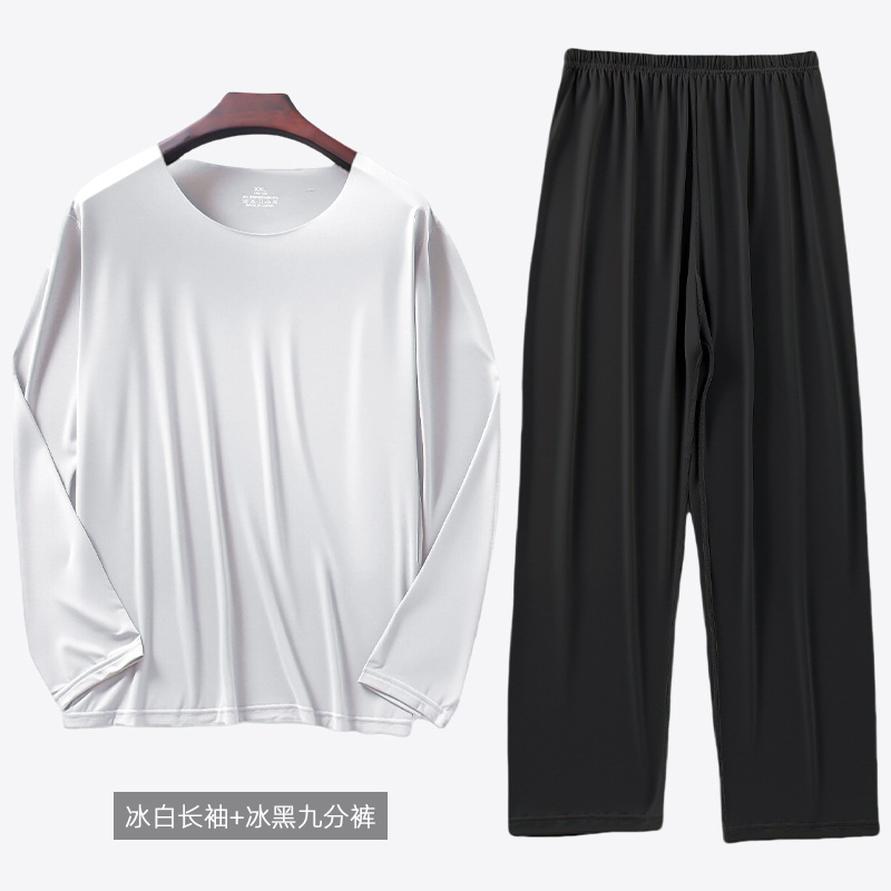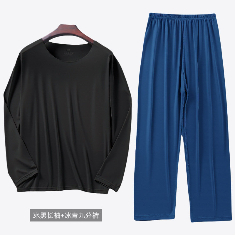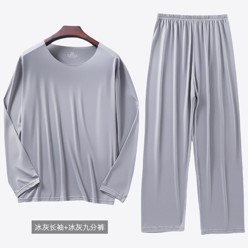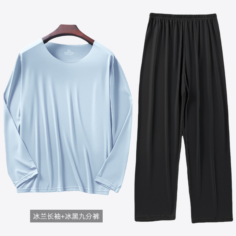 Главная страница > Неченый ледяной шелк пижамы летом мужчины с длинными рукавами брюки наизранный спортивный повседневный набор домашней одежды тонкий плюс большой размер