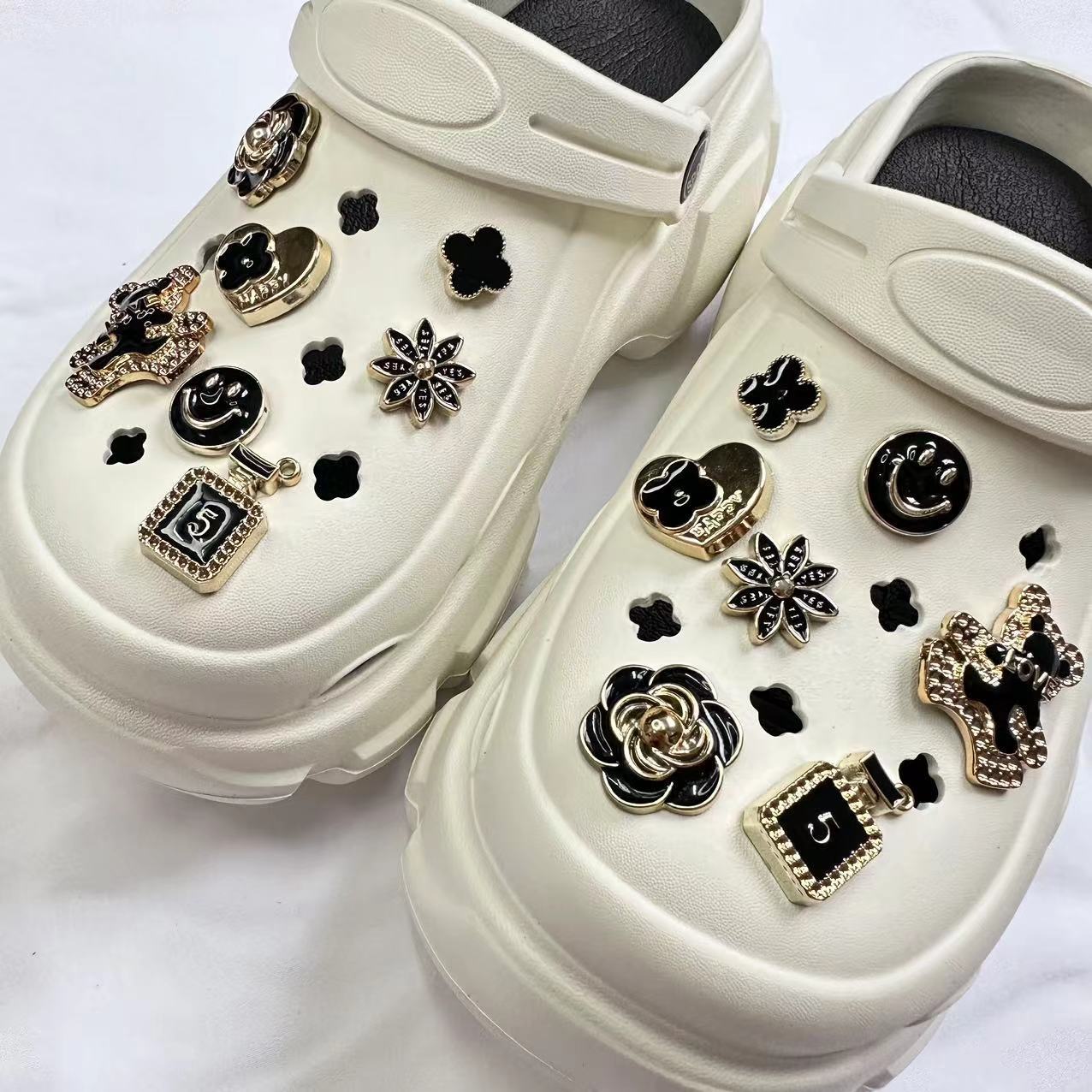 Набор пряжек с буквенным и цветочным узором в стиле Chanel [12 предметов]#Обувь в комплект не входит]
