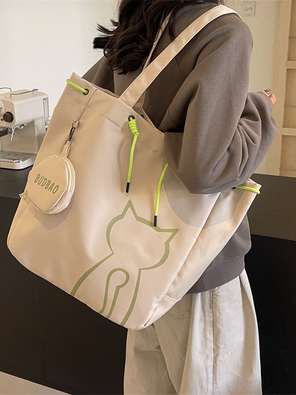 Главная страница > Сумка большой емкости, универсальная женская сумка-тоут с мультяшным котом, водонепроницаемая сумка на шнурке, повседневная универсальная студенческая сумка для поездок на работу