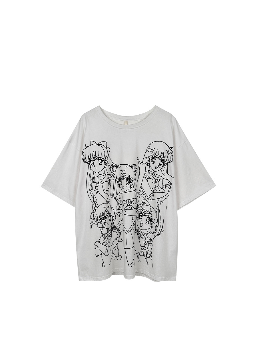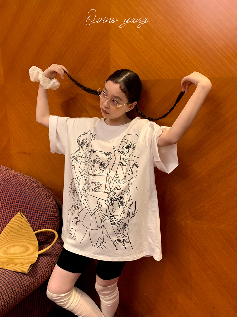 Главная страница > [Пункт заказа] Женская футболка с принтом Sailor Moon от ovinsyang, с короткими рукавами, свободного кроя, повседневного стиля, из чистого хлопка.