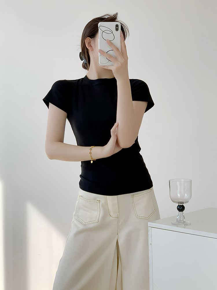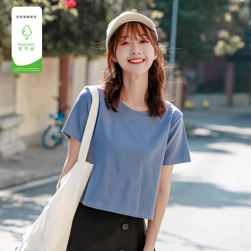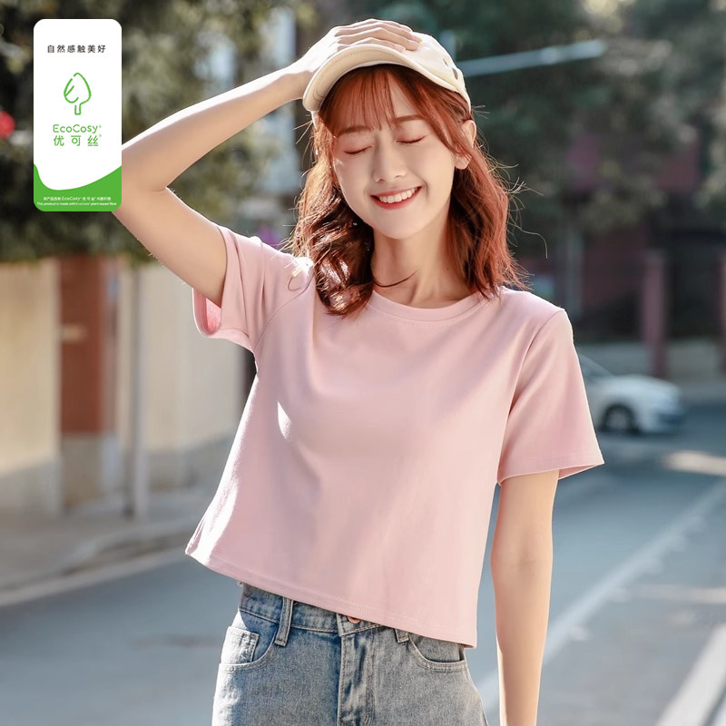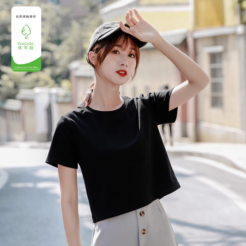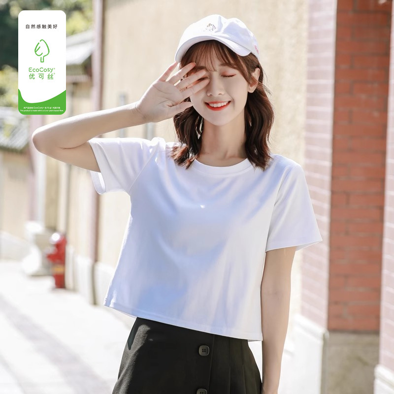 Главная страница > Женская футболка с короткими рукавами на правом плеча, свободная рубашка из эко-шелка, весна-лето 2022, новый топ с высокой талией, облегающий крой для маленьких людей