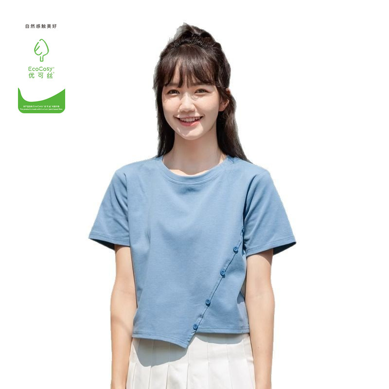 Женская футболка с короткими рукавами на правом плеча, свободная рубашка из эко-шелка, весна-лето 2022, новый топ с высокой талией, облегающий крой для маленьких людей