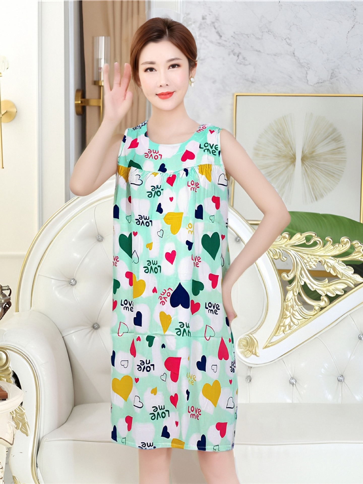 Главная страница > Летние пижамы для среднего и пожилого возраста, Женская хлопковая шелковая ночная рубашка для мамы, летнее хлопковое платье больших размеров для взрослых