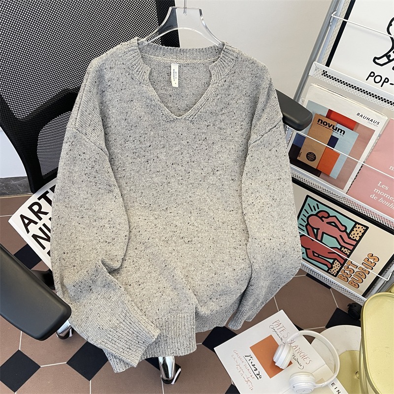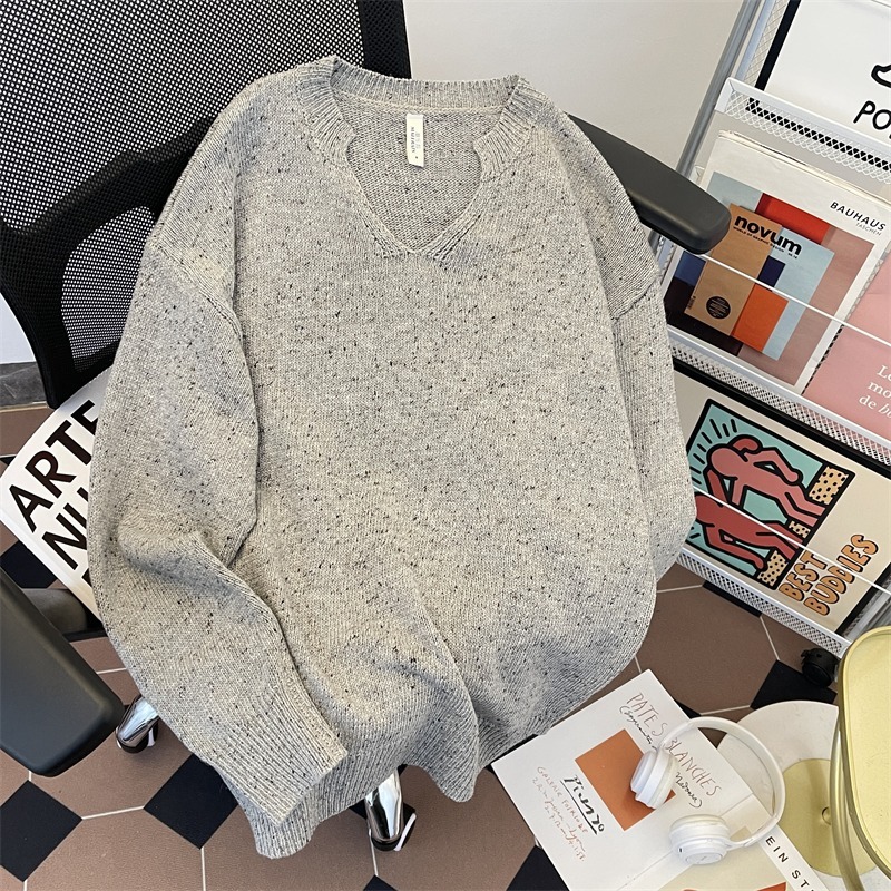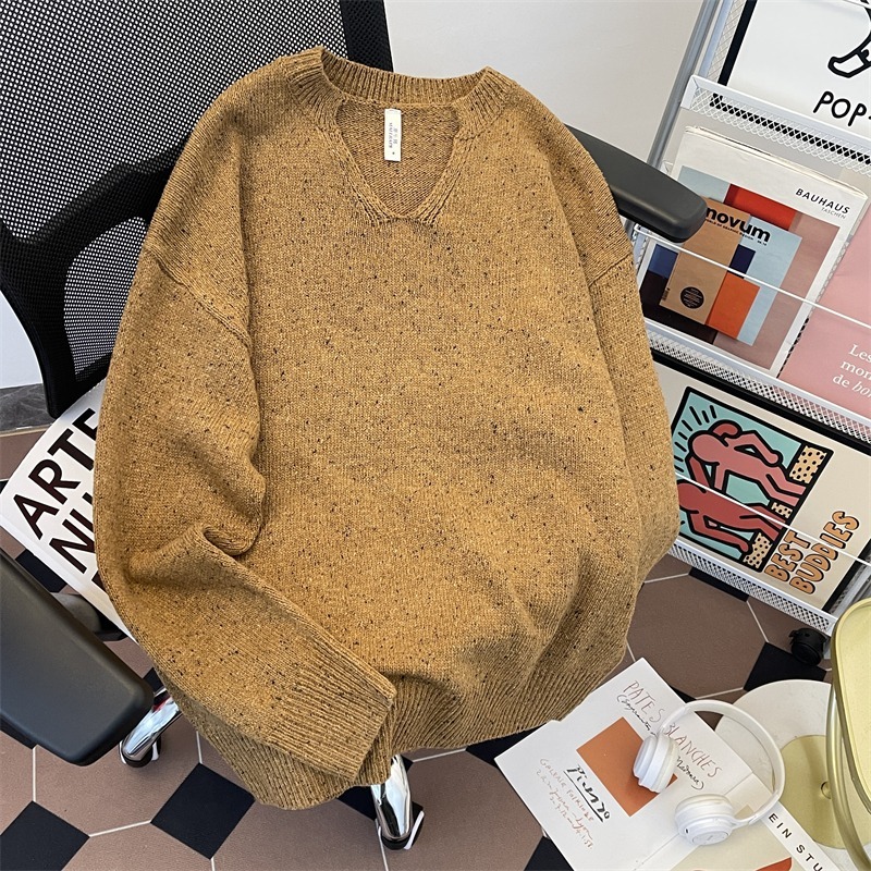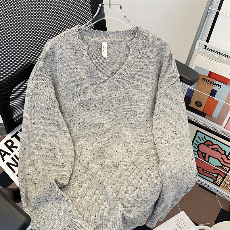 Ретро высокого уровня V-образный свитер с наплечным вырезом для мальчиков, американский свободный cleanfit повседневный дикий мягкий клейкий трикотаж