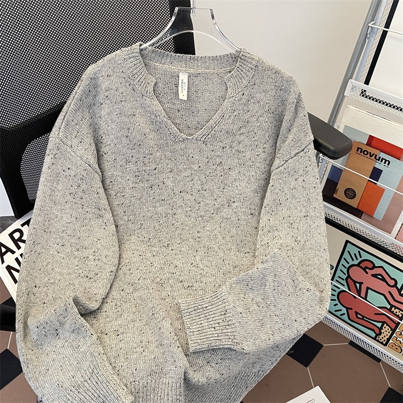 Главная страница > Ретро высокого уровня V-образный свитер с наплечным вырезом для мальчиков, американский свободный cleanfit повседневный дикий мягкий клейкий трикотаж