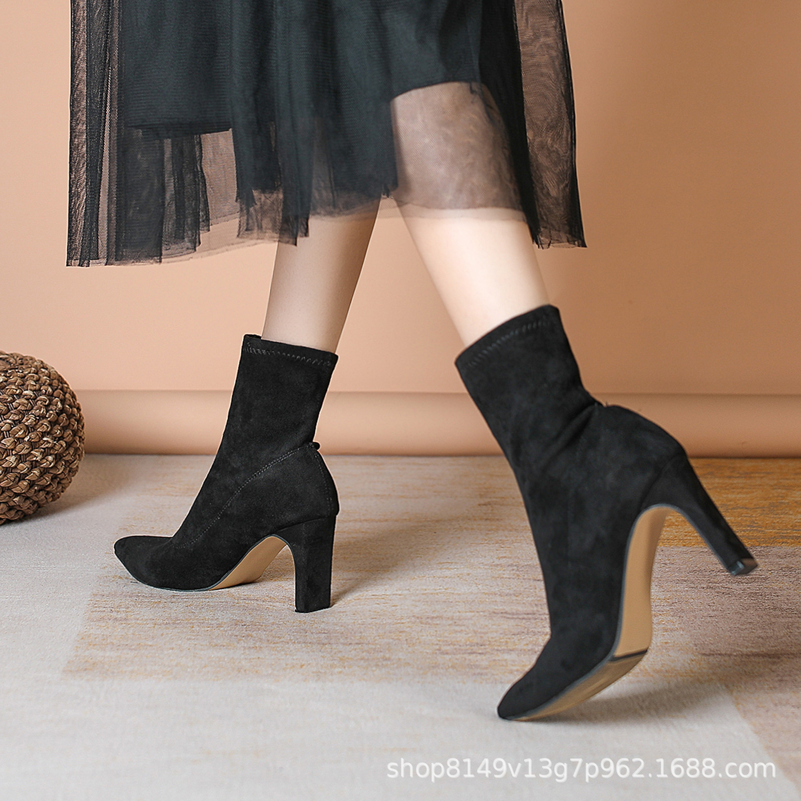 Черная замша плюс бархат 8 (высота каблука 8cm )