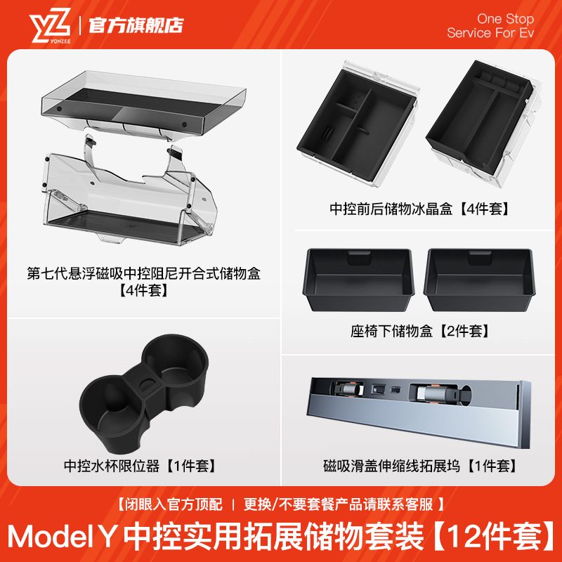 Обновленная версия практичного набора для хранения расширений центрального управления модели Y [верхняя версия с магнитным обновлением — набор из 8 предметов]