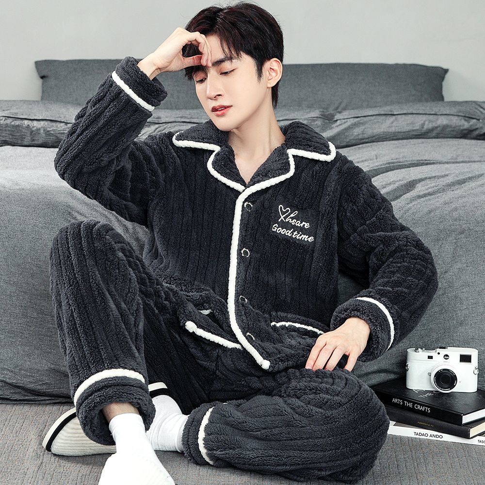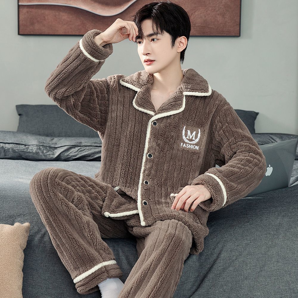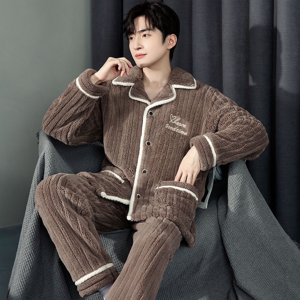 Главная страница > Теплая Пижама Домашняя одежда Мужская 2023 Новая утолщенная зимняя пижама из кораллового флиса больших размеров плюс флисовый костюм для молодежи и среднего возраста