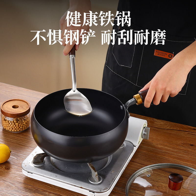 Большой железный горшок Чжанцю для домашнего использования, глубокая кастрюля с антипригарным покрытием, сковорода с плоским дном, молочная кастрюля, совместимая с электрическим и газовым оборудованием.
