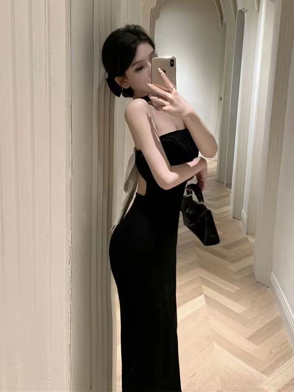 Главная страница > Черный недоуздок платье Лето Чистая горячая девушка юбка сексуальный лук небольшой приталенный облегающий юбка с разрезом