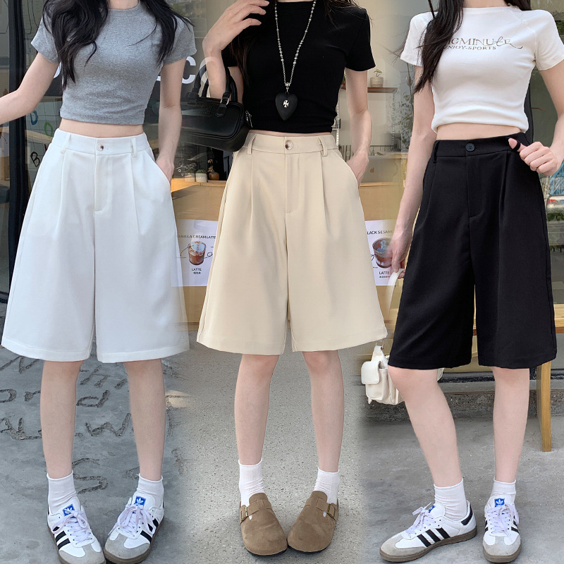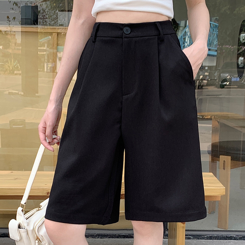 Старый денежный стиль повседневные костюмы и шорты женские 25 лет ретро свободное слово брюки с высокой талией и широкими ногами пять или шесть очков прямые брюки