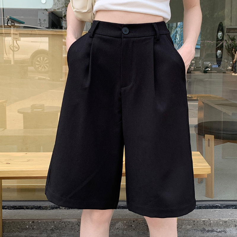 Главная страница > Старый денежный стиль повседневные костюмы и шорты женские 25 лет ретро свободное слово брюки с высокой талией и широкими ногами пять или шесть очков прямые брюки