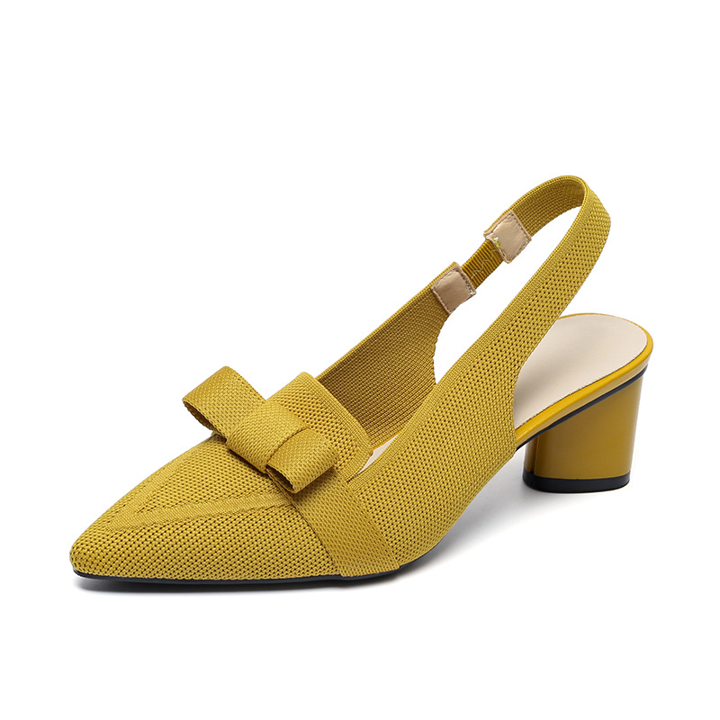 663-2 Баотоу мелкий лук сплошной цвет летние сандалии на высоком каблуке ткани толстые каблуки