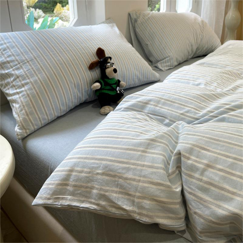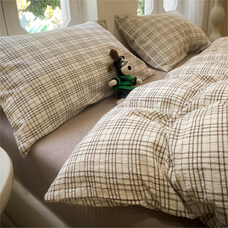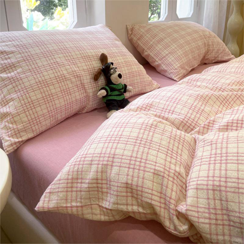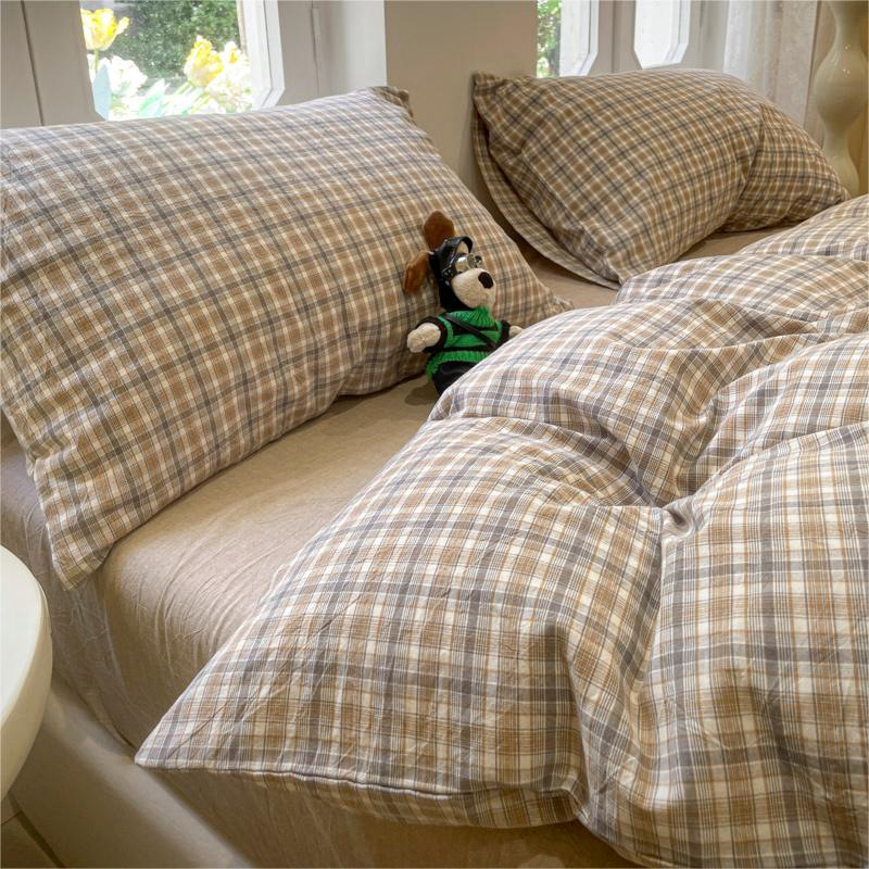 Главная страница > Комплект из четырех предметов в клетку MUJI в японском стиле из стираного хлопка для студенческого общежития для мальчиков, простыни и пододеяльник, комплект из трех предметов, цельный