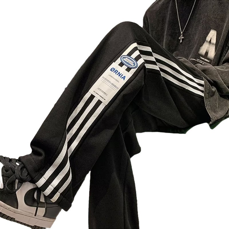 Модные Брендовые повседневные брюки в полоску, мужские на весну и осень, плотные прямые широкие брюки на флисовой подкладке, свободные спортивные брюки больших размеров в гонконгском стиле