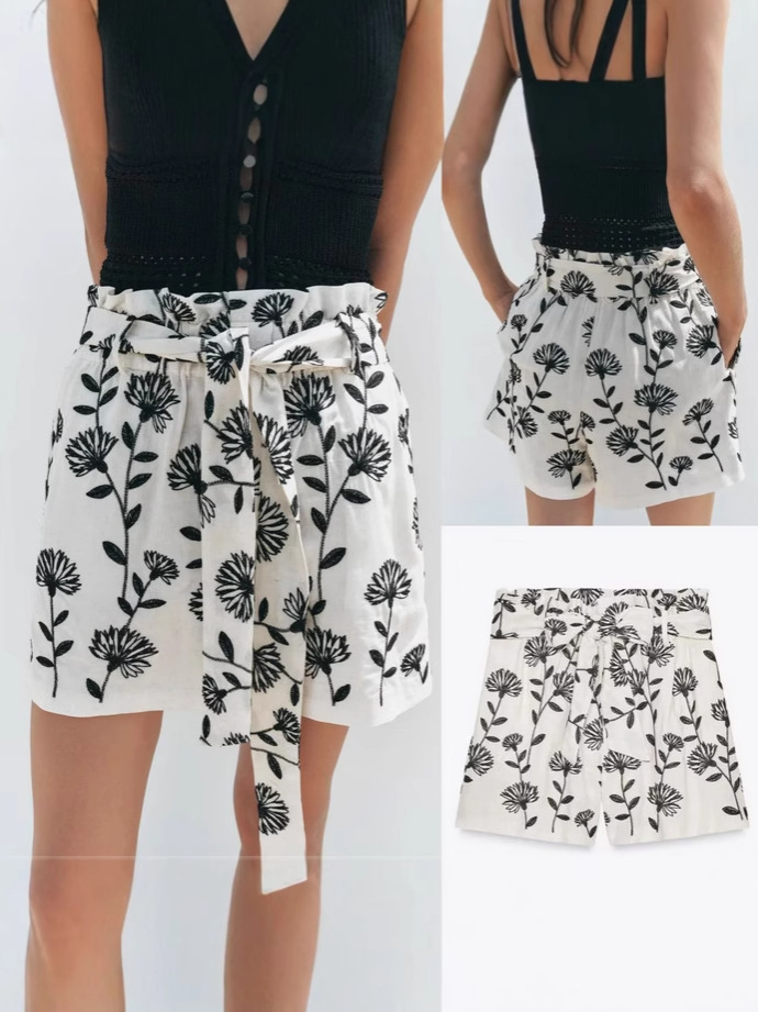 FH4875 25 Amazon экспорт оптом трансграничная летняя новая женская вышитая бумажная сумка декорированные повседневные шорты