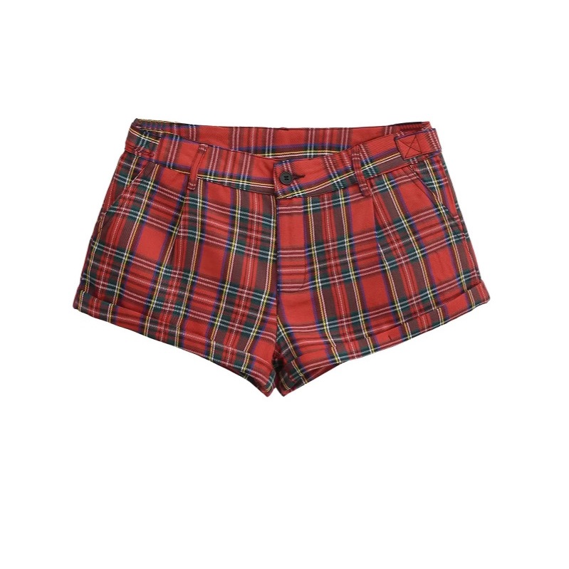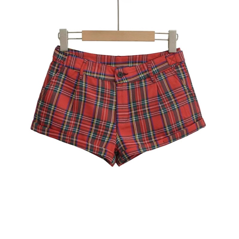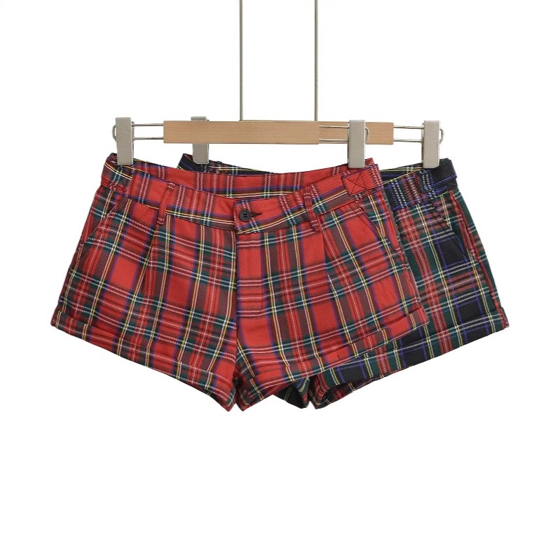 Главная страница > Сладкие и пикантные красные клетчатые ультракороткие шорты для женщин, лето 2025, сексуальные утягивающие шорты с манжетами и низкой талией, модные тканые шорты