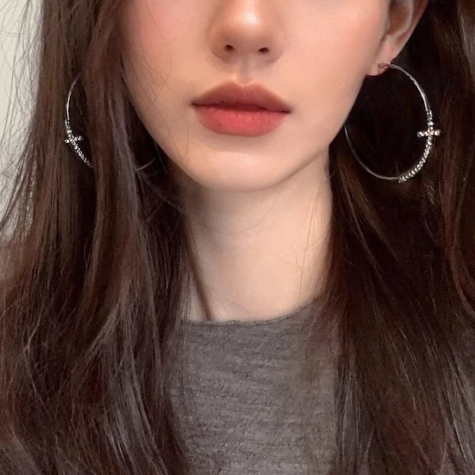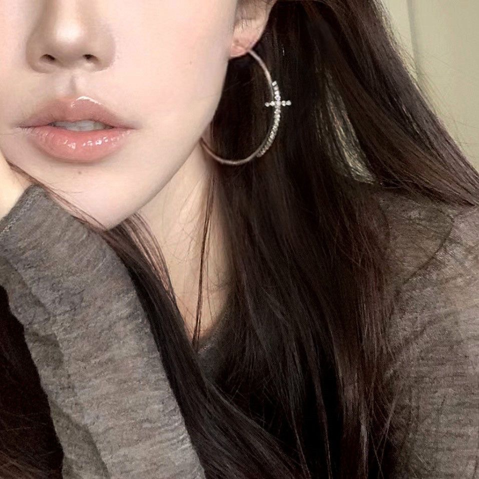 Серебряная игла с бриллиантами круглые ушные круги европейская и американская индивидуальность минималистичная круговая серьга легкая роскоши, высокий смысл дизайна ушей