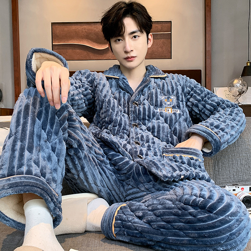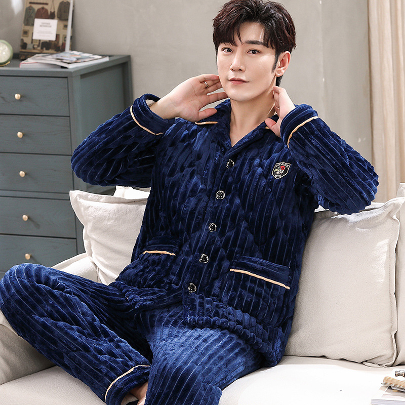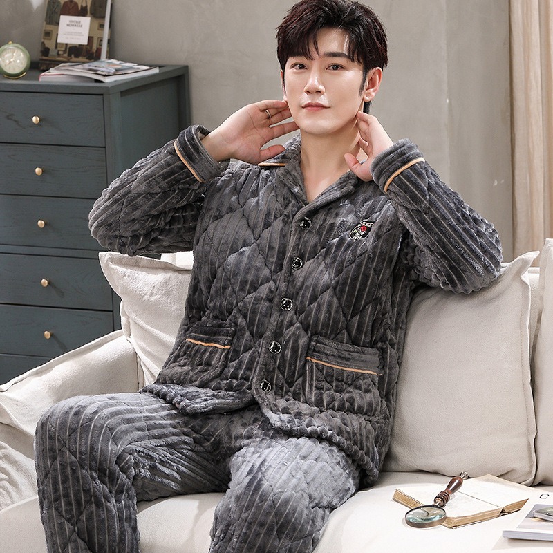 Главная страница > 2024 Три слоя хлопка новый мужской пижамы осенью и зимой