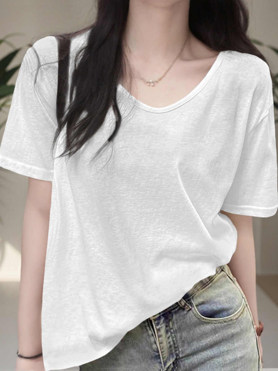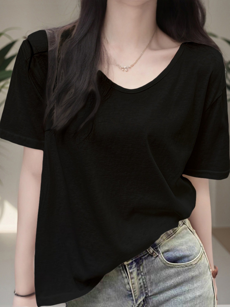 Главная страница > Белая бамбуковая хлопковая футболка с глубоким вырезом, женская футболка с короткими рукавами, новинка 2025 года, лето, европейский стиль, свободный топ с большим вырезом и v-образным вырезом на правое плечо