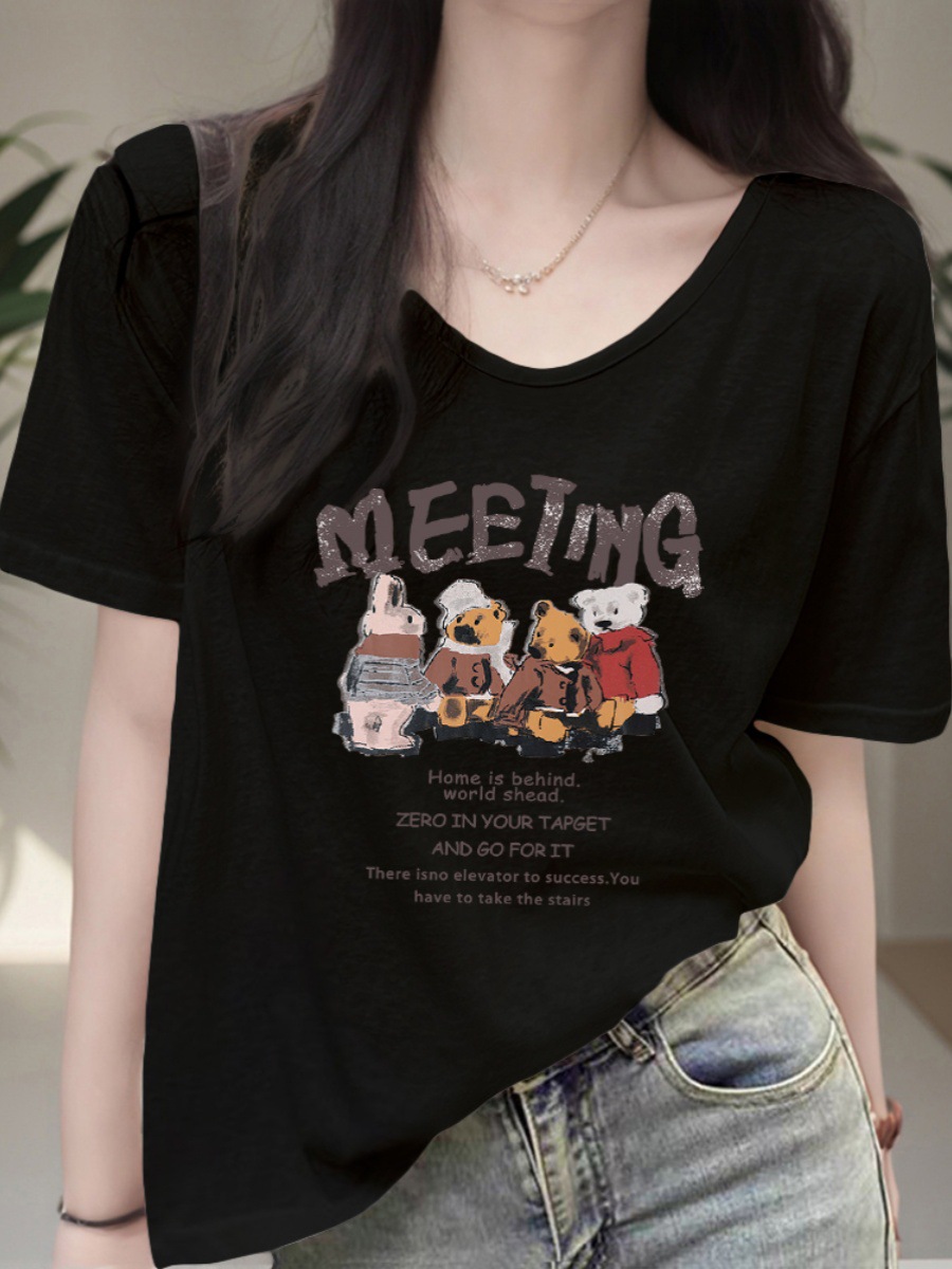 Белая бамбуковая хлопковая футболка с глубоким вырезом, женская футболка с короткими рукавами, новинка 2025 года, лето, европейский стиль, свободный топ с большим вырезом и v-образным вырезом на правое плечо
