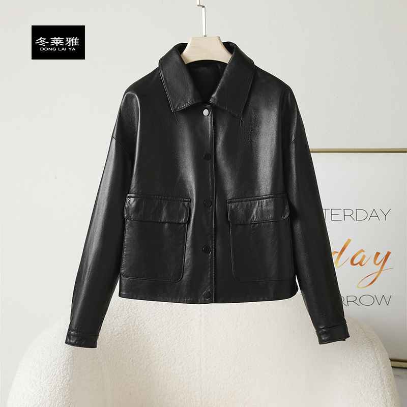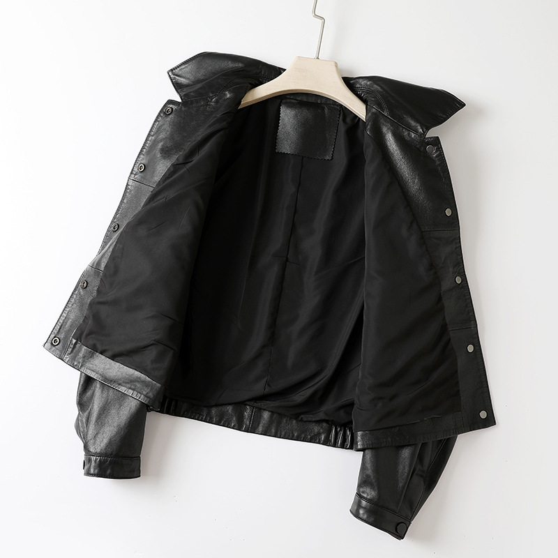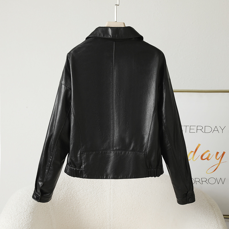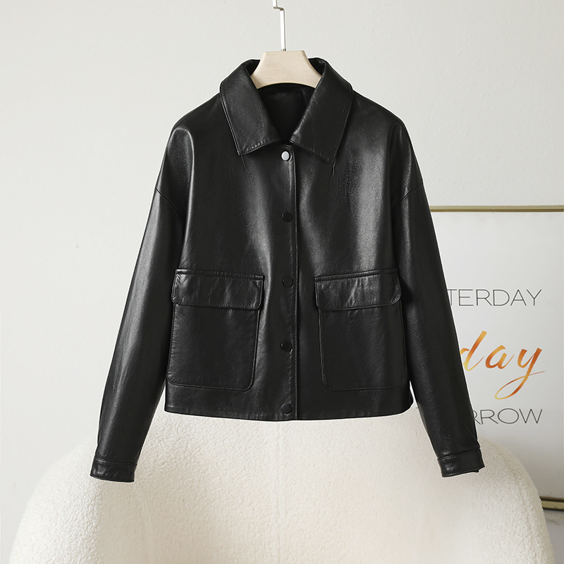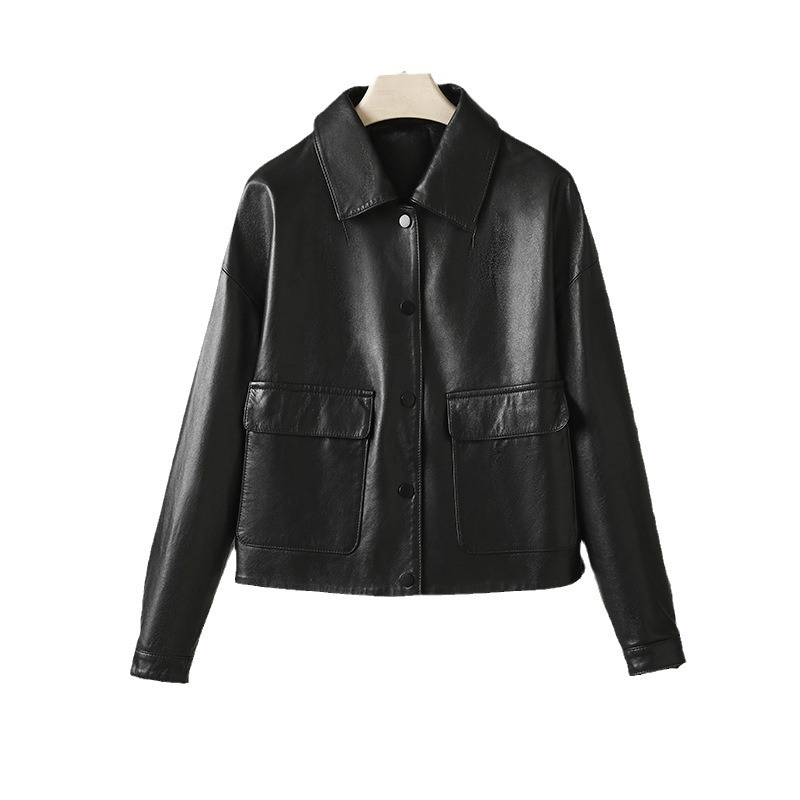 Главная страница > Haining весна и осень новая кожаная кожаная одежда женская овечья кожа полувековеченная куртка с коротким лацканом повседневная мотоциклетная кожаная куртка