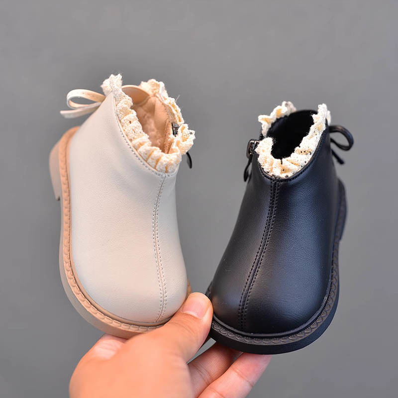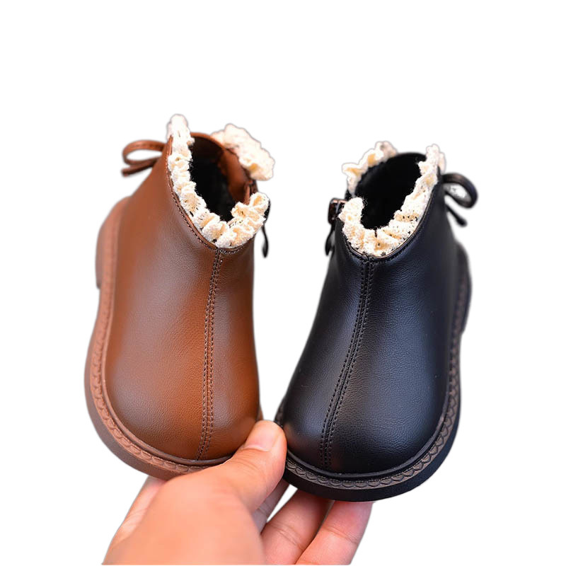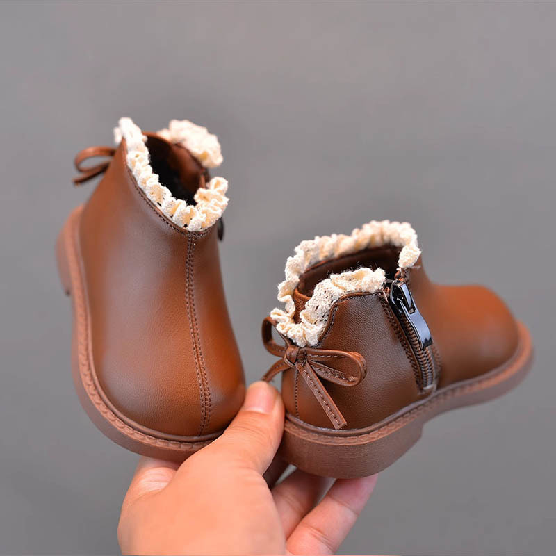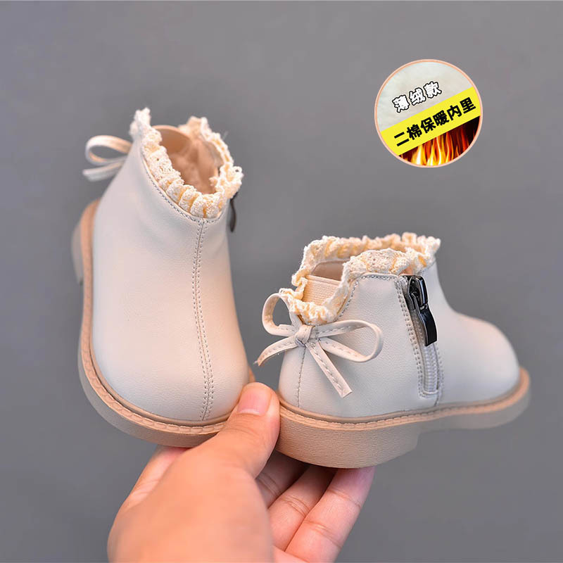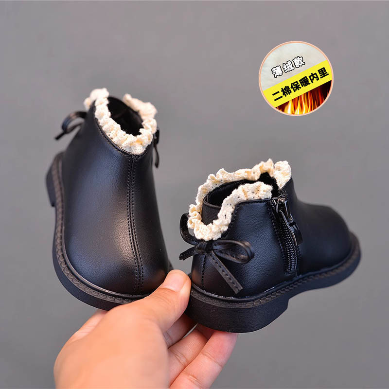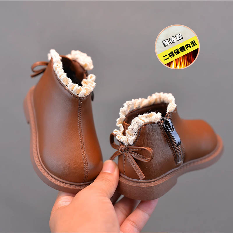 2024 осень и зима детская обувь короткая обувь маленькая кожаная обувь детская мягкая подошва обувь для девочек сапоги принцессы обувь