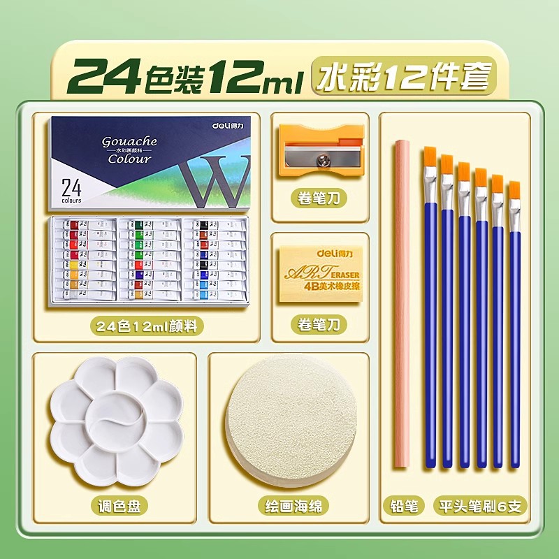 [Усовершенствованная модель большой емкости] Акварель, 24 цвета, 12 мл, набор из 12 предметов