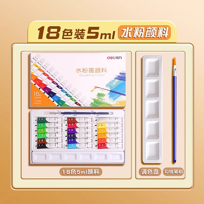 [Базовая модель] Гуашь 18 цветов, 5 мл/бесплатная кисть + палитра