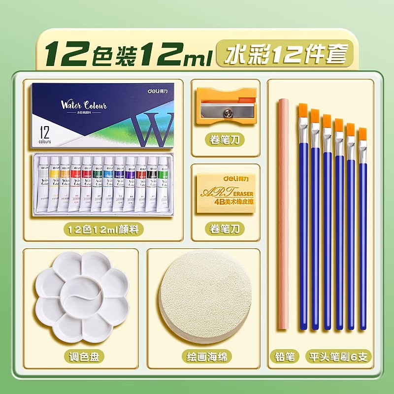 [Усовершенствованная модель большой емкости] Акварель, 12 цветов, набор 12 мл и 12 предметов
