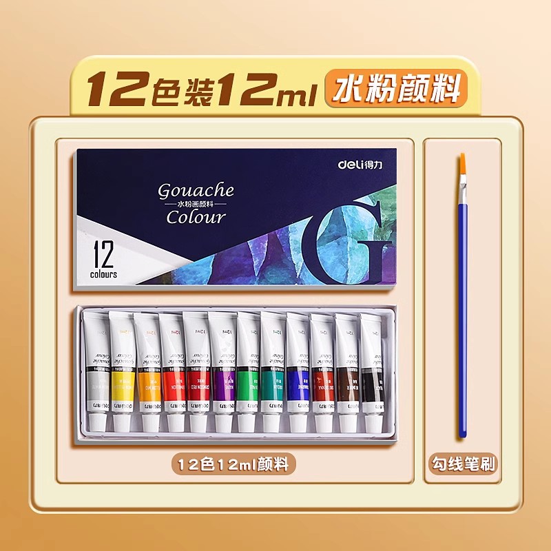 [Базовая модель большой емкости] Гуашь 12 цветов, 12 мл/бесплатная кисть