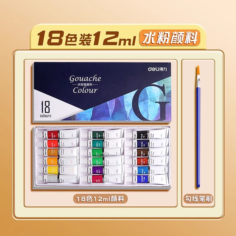 [Базовая модель большой емкости] Гуашь 18 цветов, 12 мл/бесплатная кисть