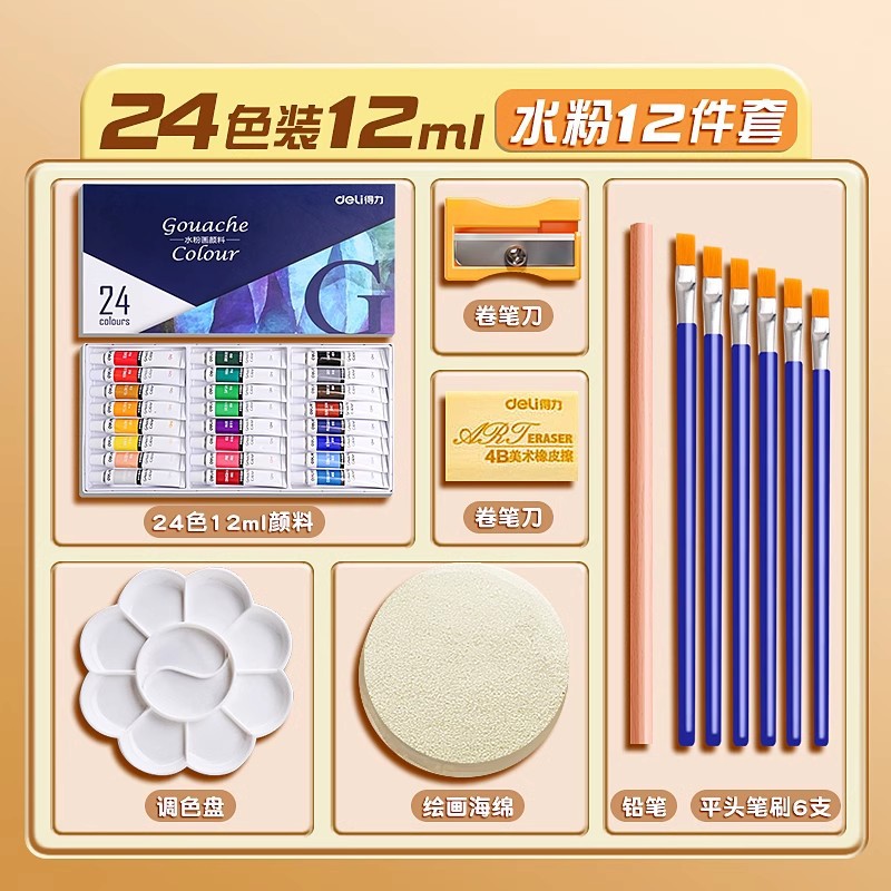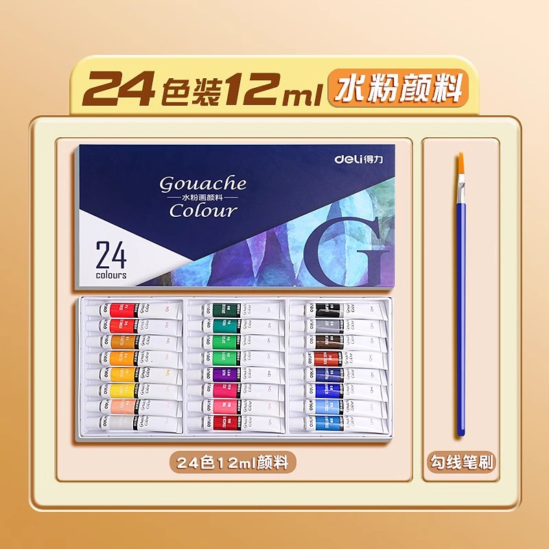 [Базовая модель большой емкости] Гуашь 24 цвета, 12 мл/бесплатная кисть