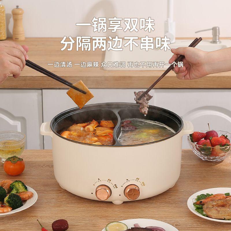 Электрическая кастрюля Yuan Yang для домашнего использования, многофункциональная универсальная с двумя переключателями, маленькая электрическая кастрюля с антипригарным покрытием большой емкости для трансграничных перевозок.