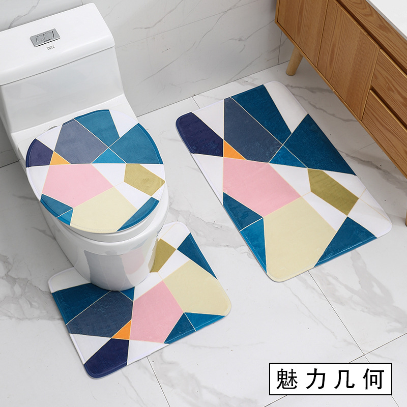 Оптовая продажа трансграничный фланелевый коврик для туалета, коврик для ванной комнаты, нескользящий коврик для ванной комнаты из трех частей, коврик для ног