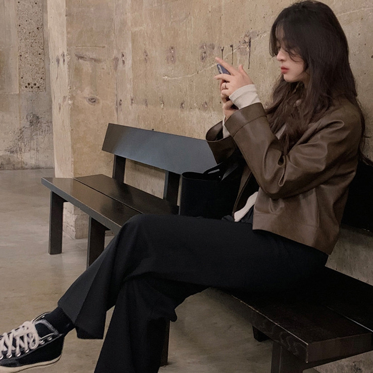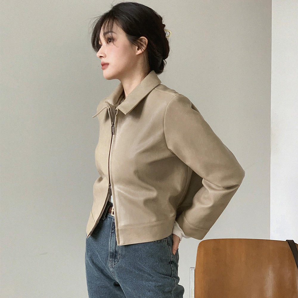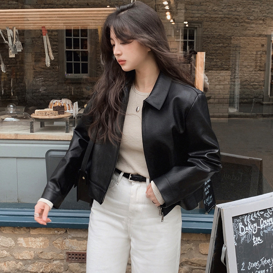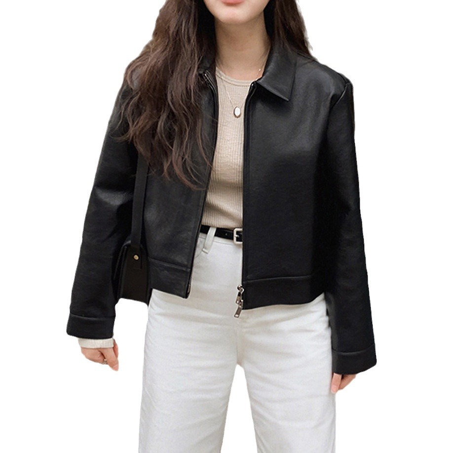 Главная страница > Корейская шикарная осенне-зимняя новинка: ретро-куртка с отложным воротником, двойной молнией, из искусственной кожи, стильное короткое пальто для женщин