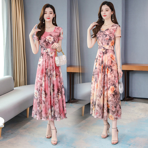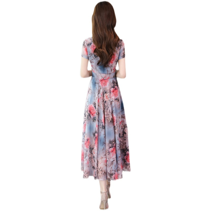 Главная страница > 2024 весна и лето V-образный вырез новая мода корейское платье с принтом из ледяного шелка