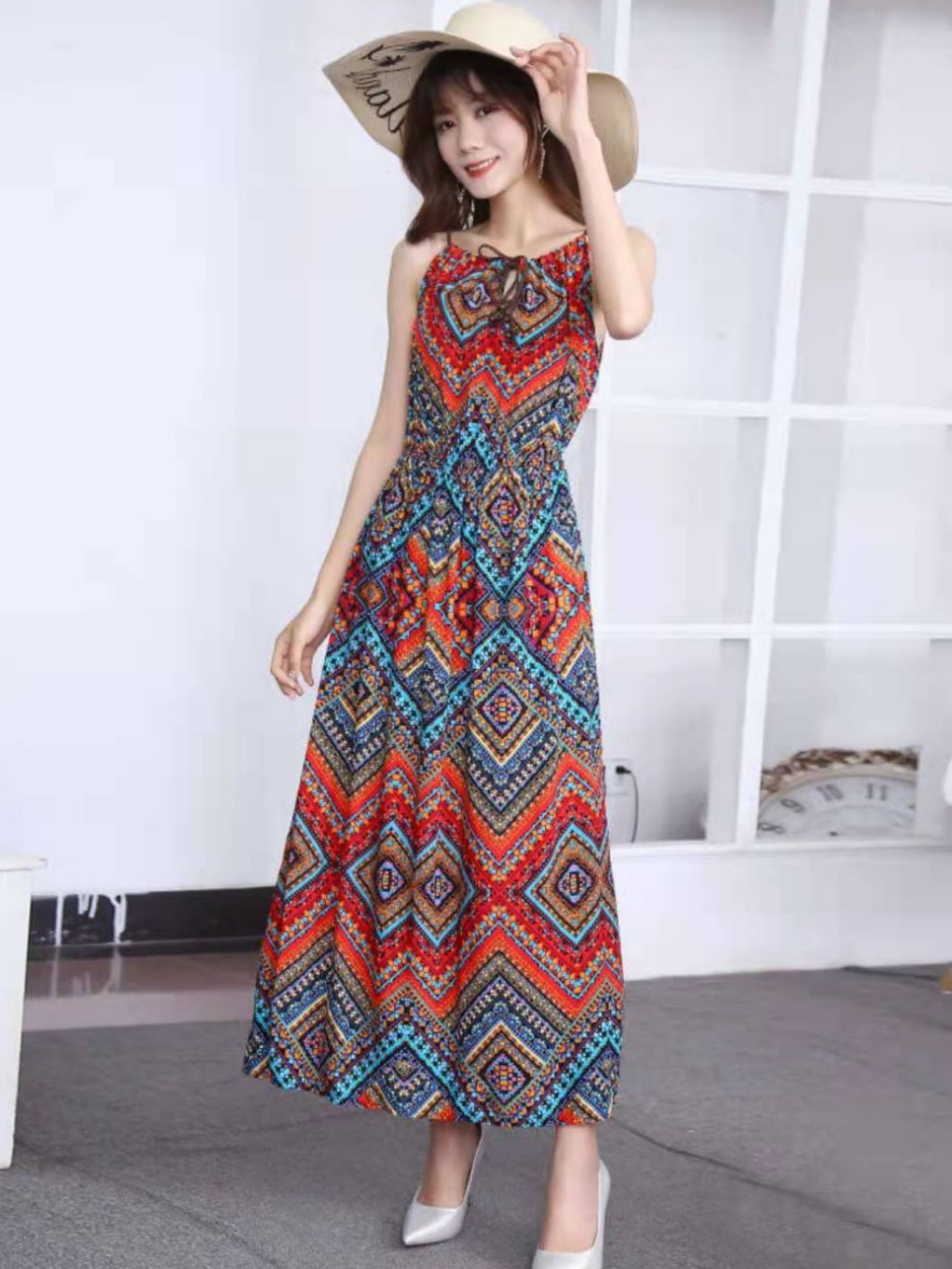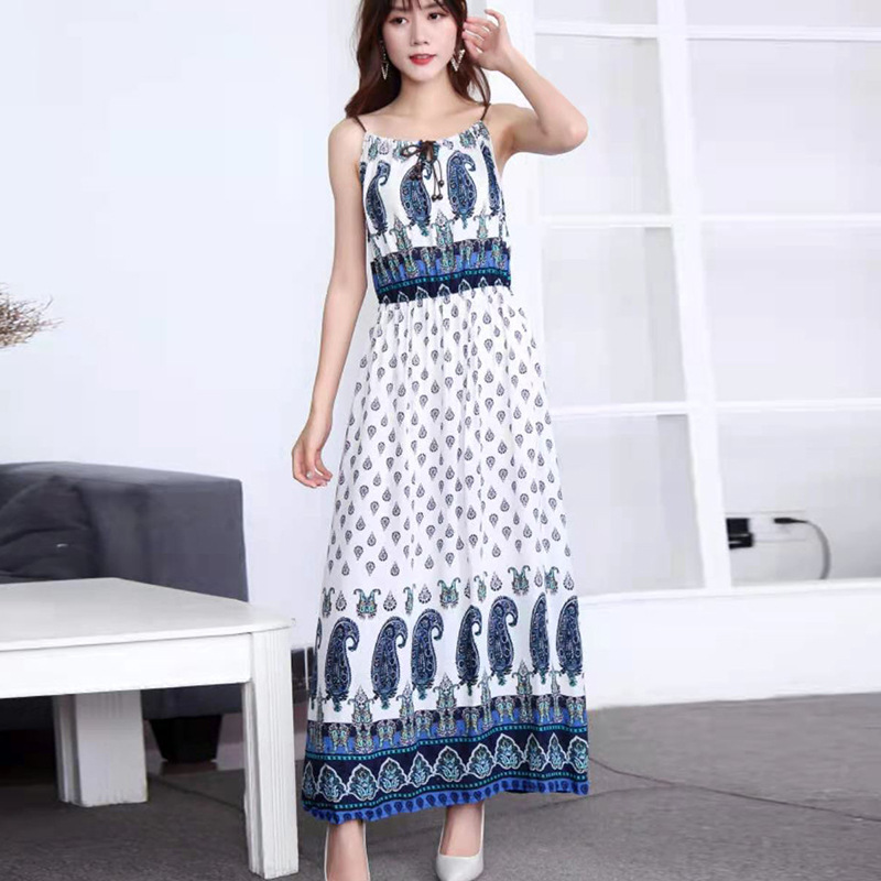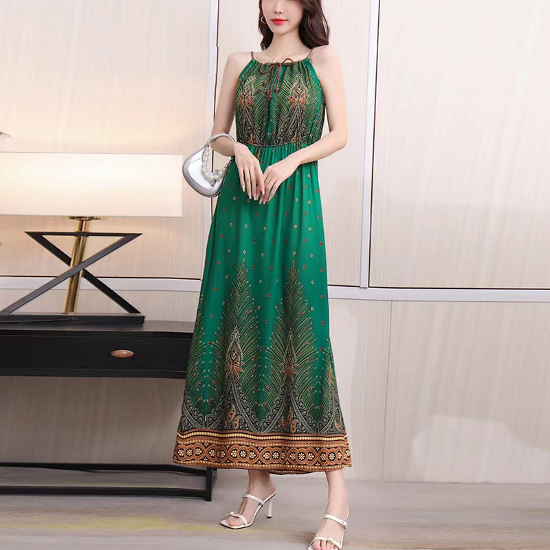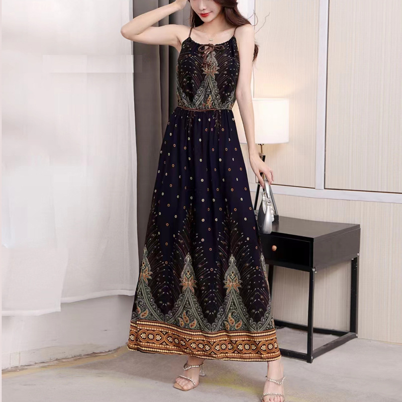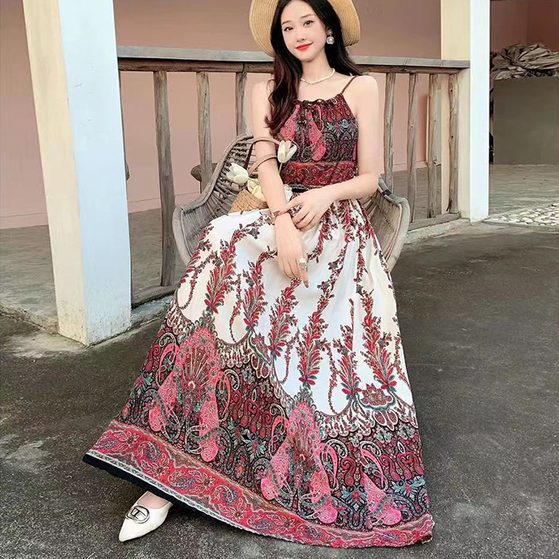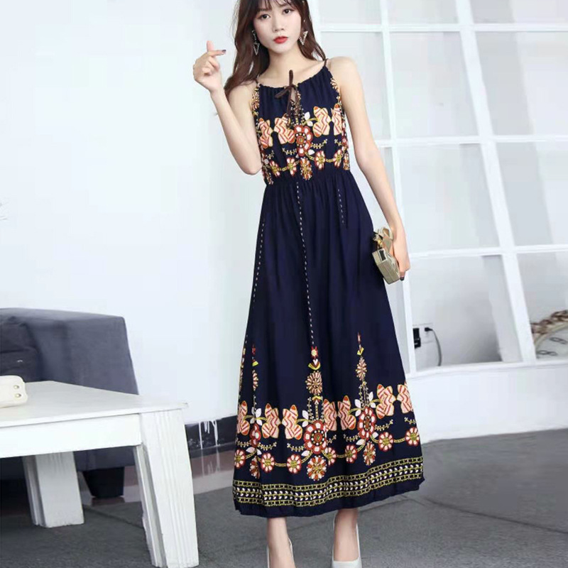 Главная страница > Пляжная юбка, хлопковое шелковое платье на подтяжках с принтом, китайское этническое стильное дорожное праздничное платье без рукавов из искусственного хлопка, свежее